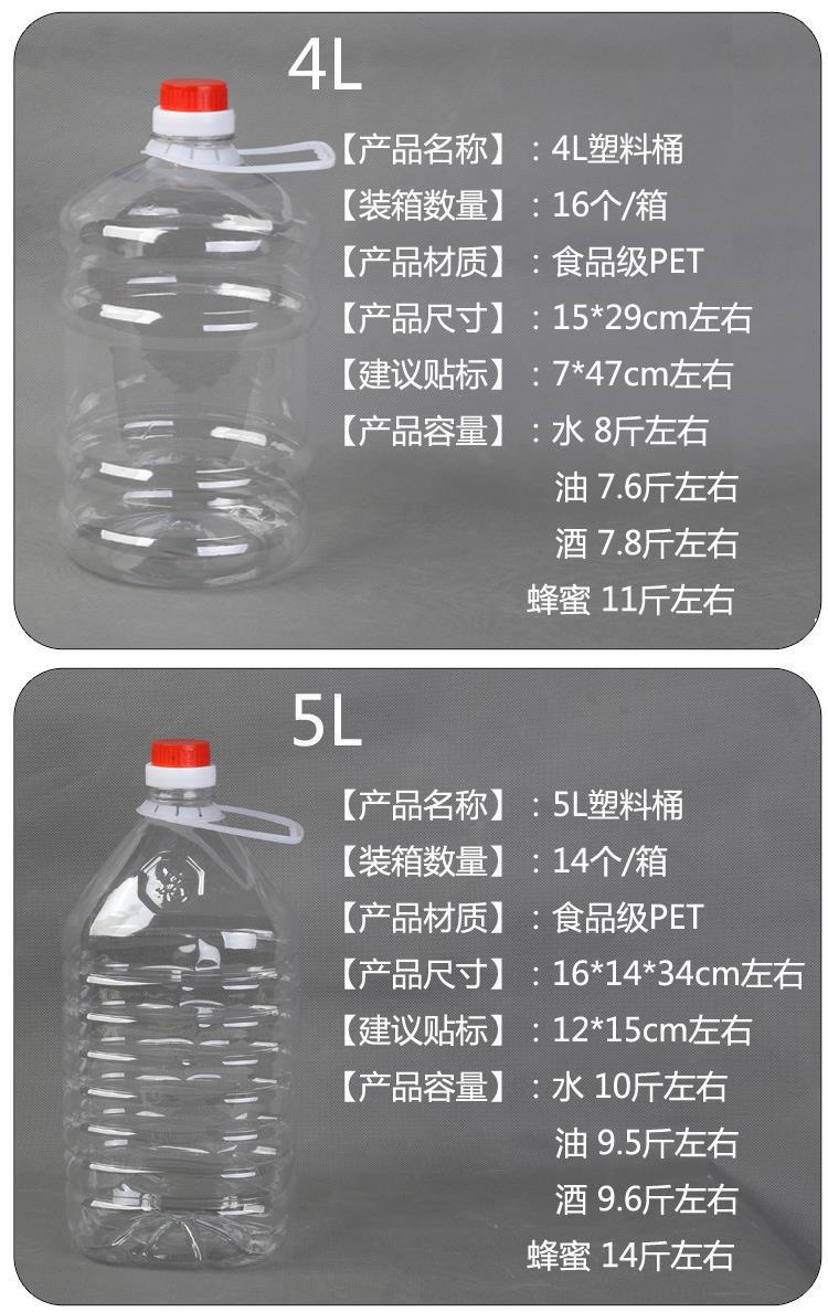 2.5L5L5kg 10kg 10kg 투명 플라스틱 오일 드럼 오일 포트 땅콩 오일 병 식용 PET 와인 드럼 와인 병 와인 포트스토어 가기