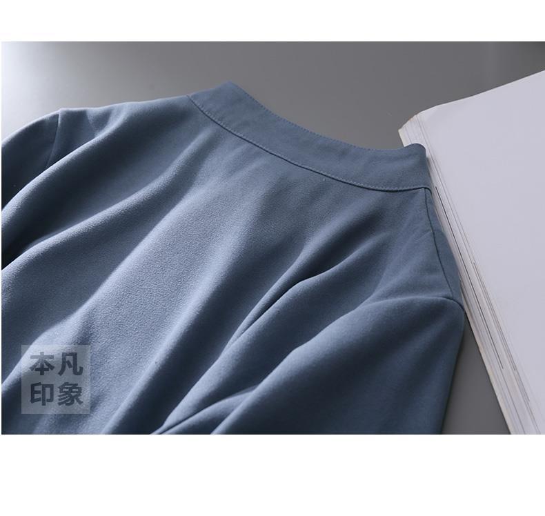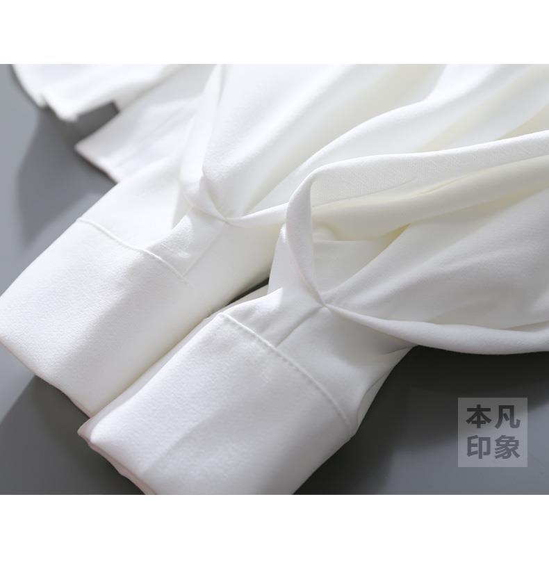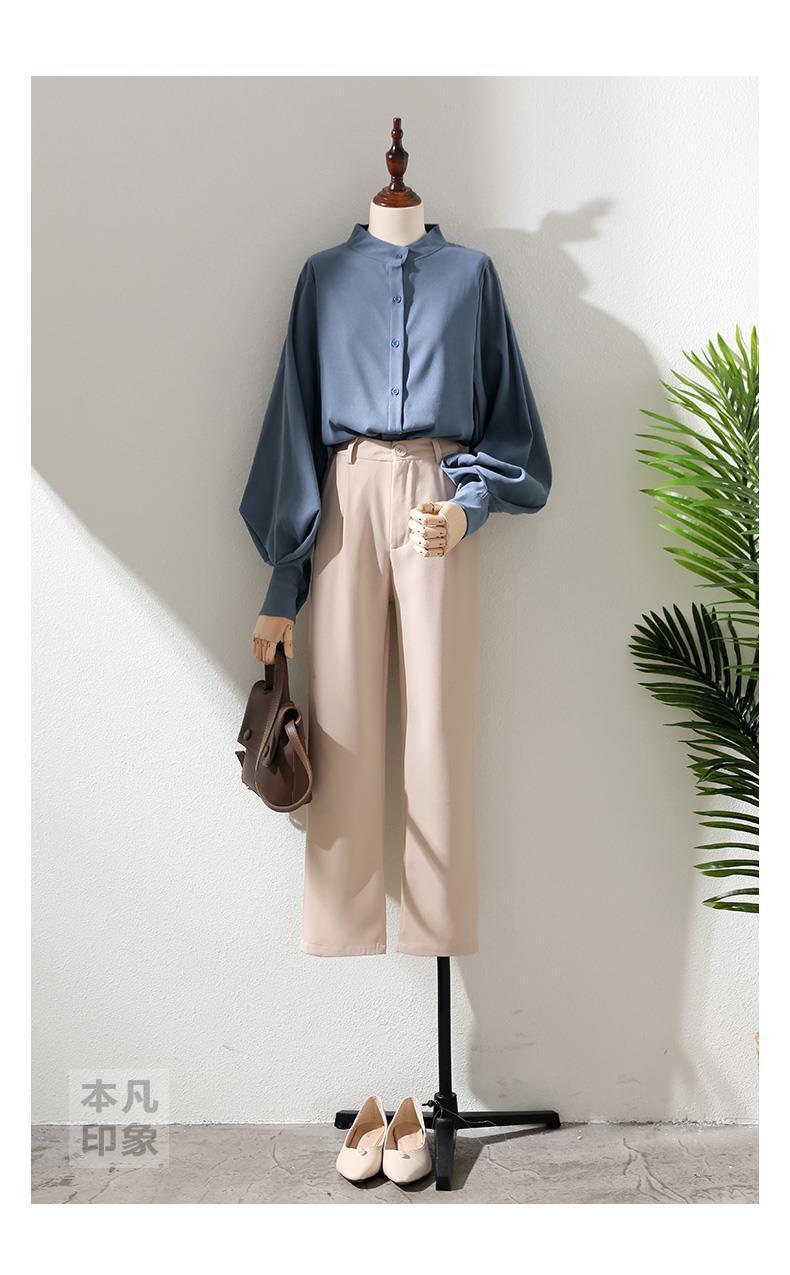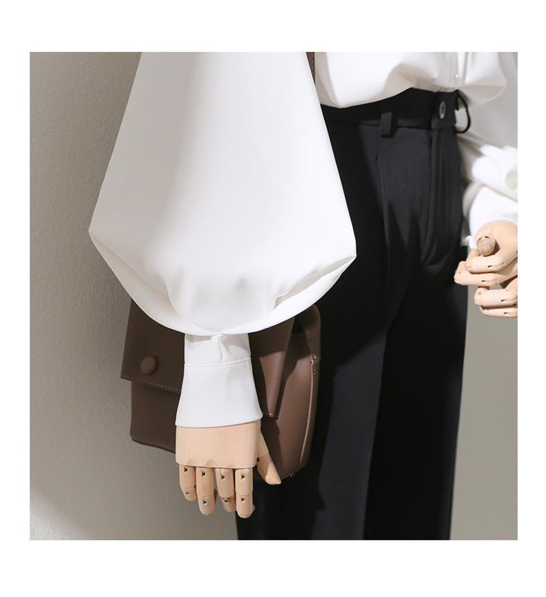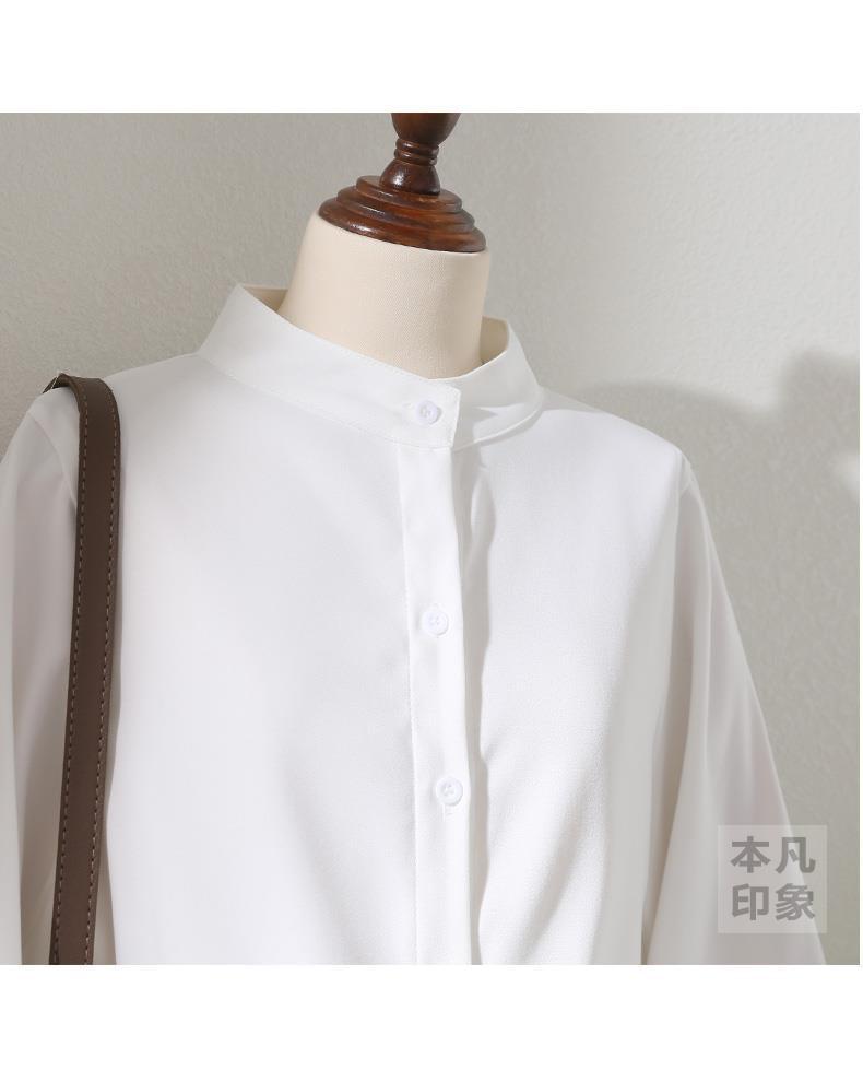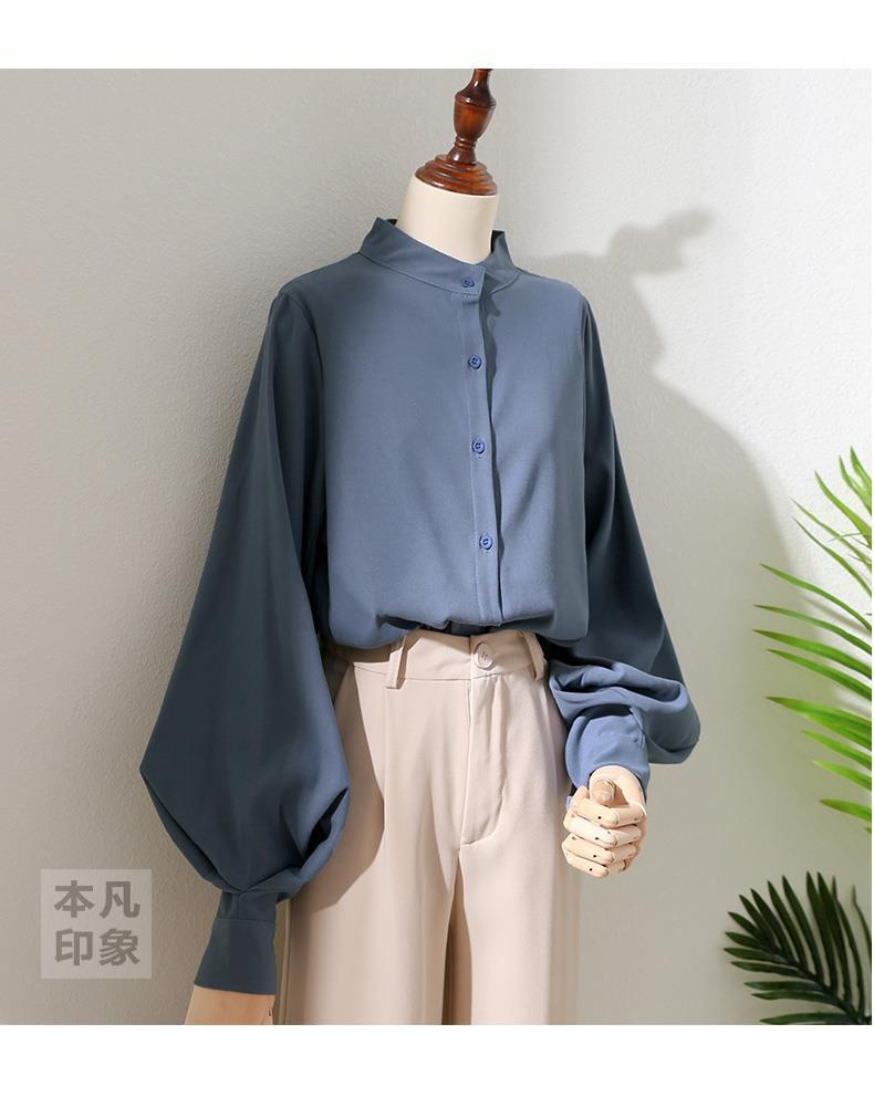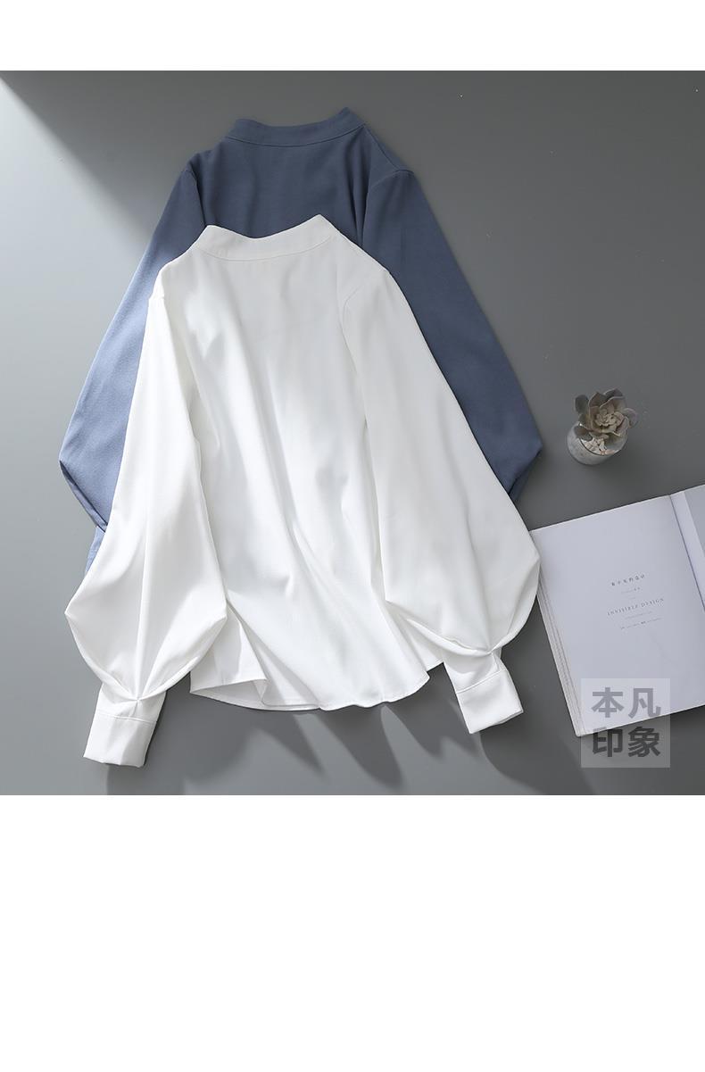가을 신상 랜턴 슬리브 화이트 셔츠 여성 긴팔 기모 탑 한국식 루즈 홍콩 스타일 스탠드 업 칼라 퍼프 슬리브