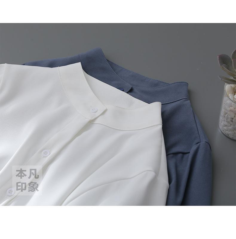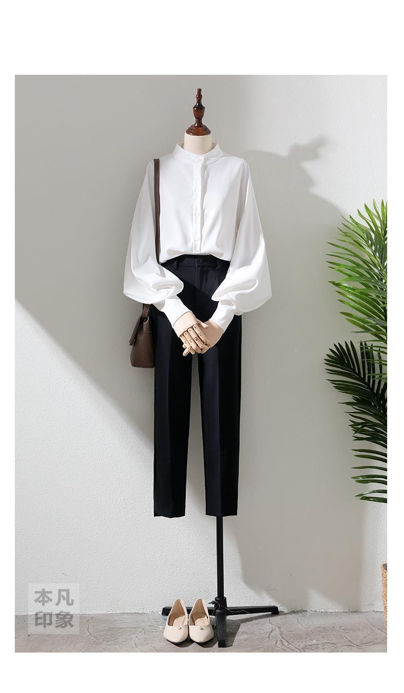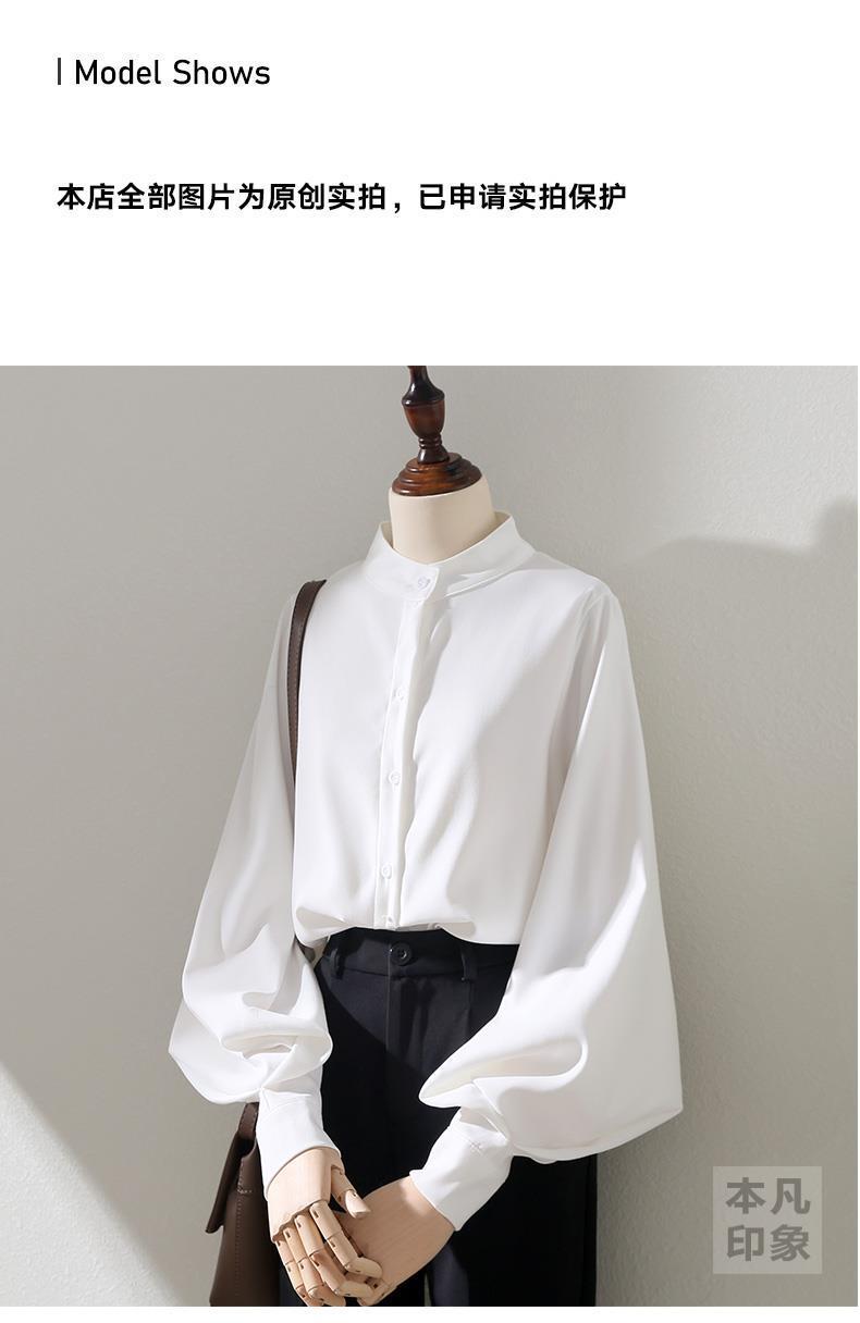 가을 신상 랜턴 슬리브 화이트 셔츠 여성 긴팔 기모 탑 한국식 루즈 홍콩 스타일 스탠드 업 칼라 퍼프 슬리브스토어 가기