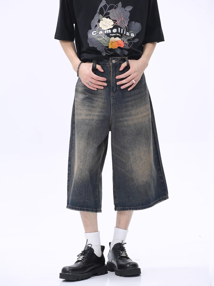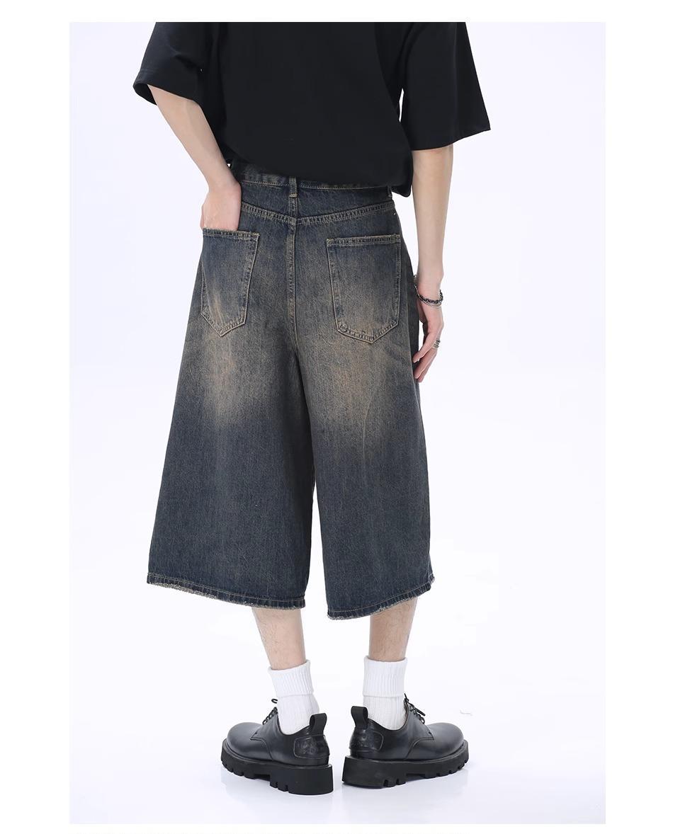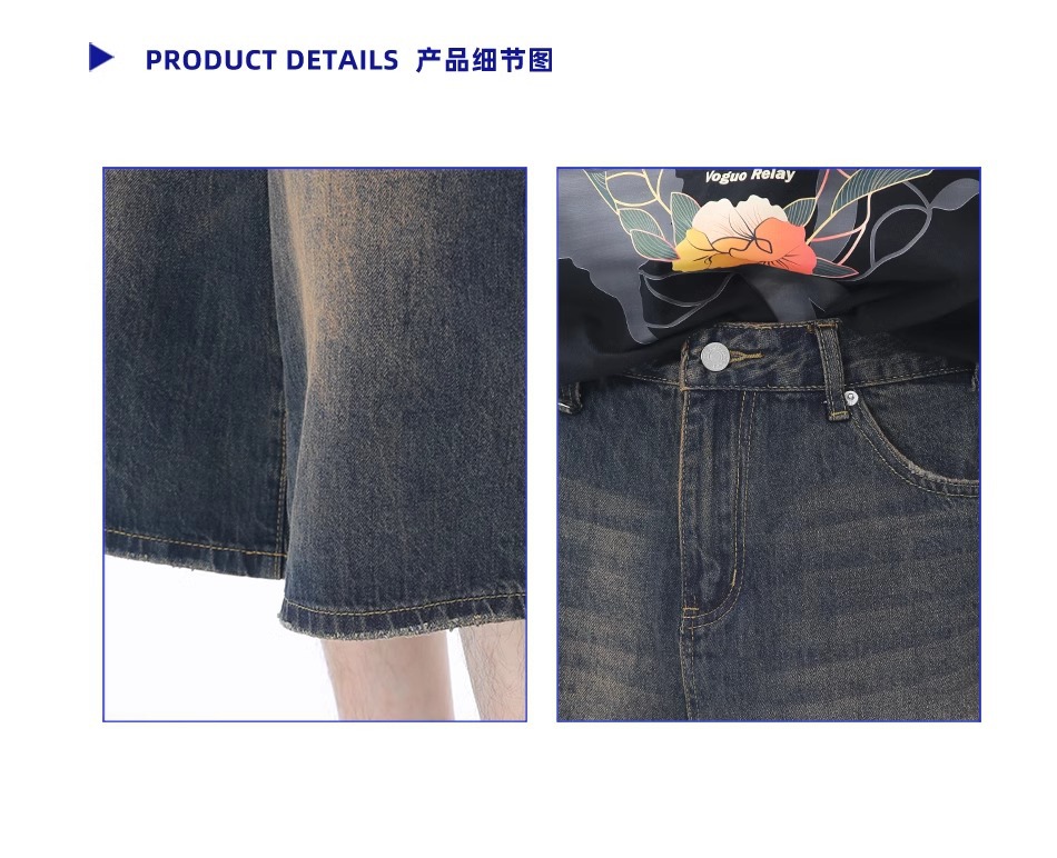 워싱 레트로 데님 반바지 남성 여름 얇은 루즈 스트레이트 아메리칸 하이 스트리트 팬츠 트렌디 브랜드 핸섬 크롭 팬츠스토어 가기