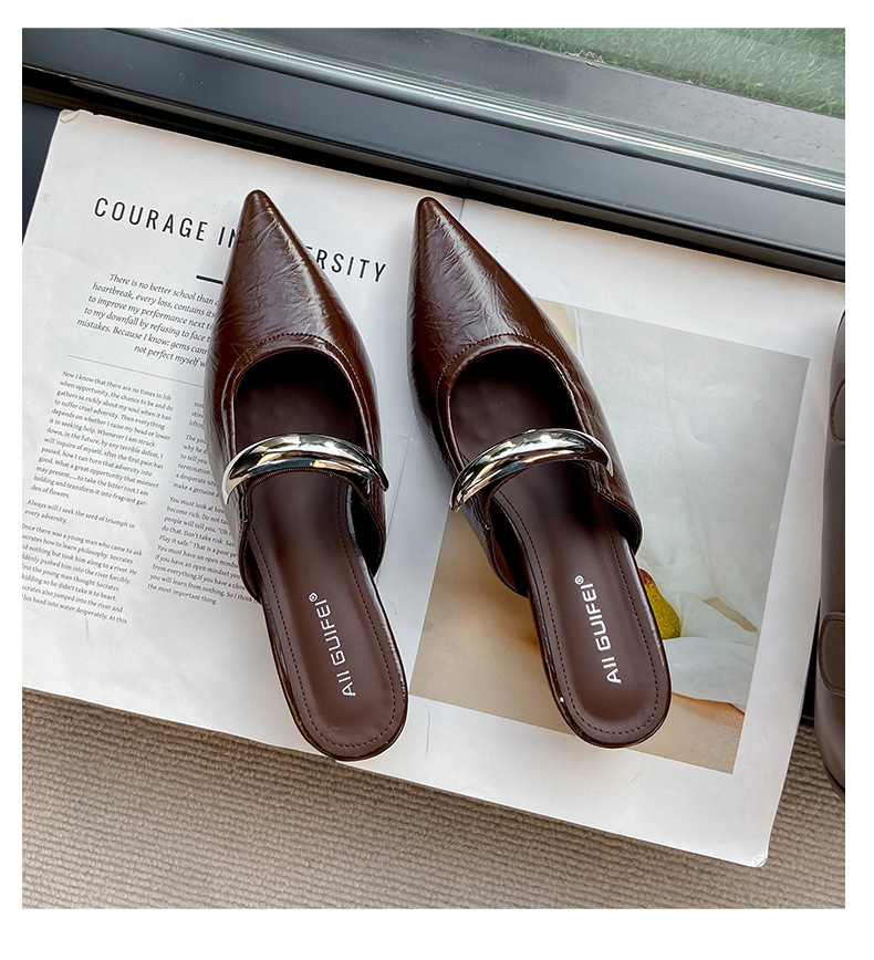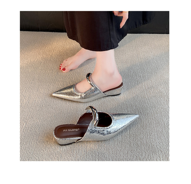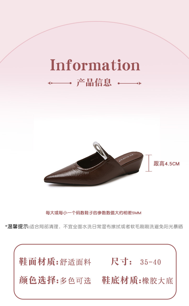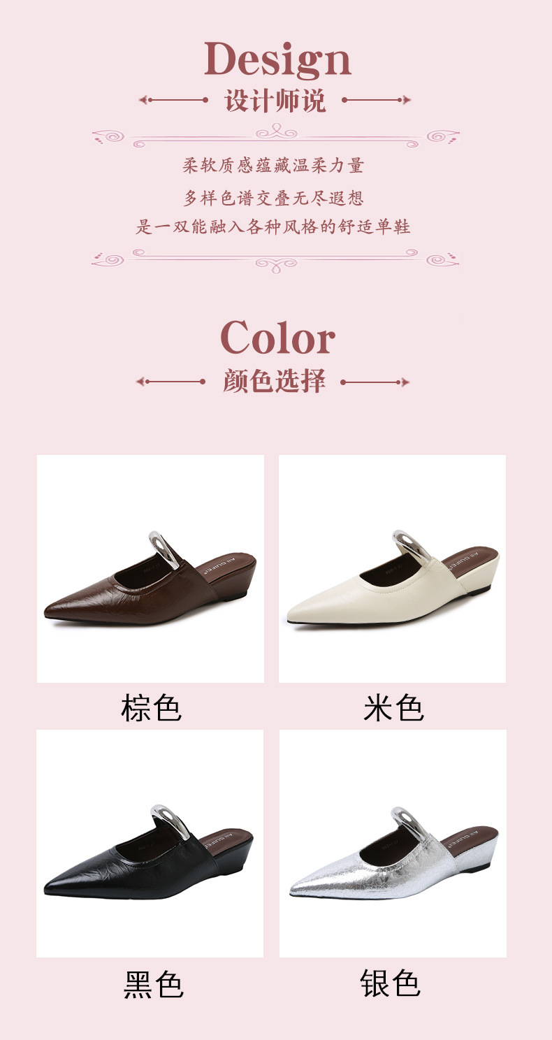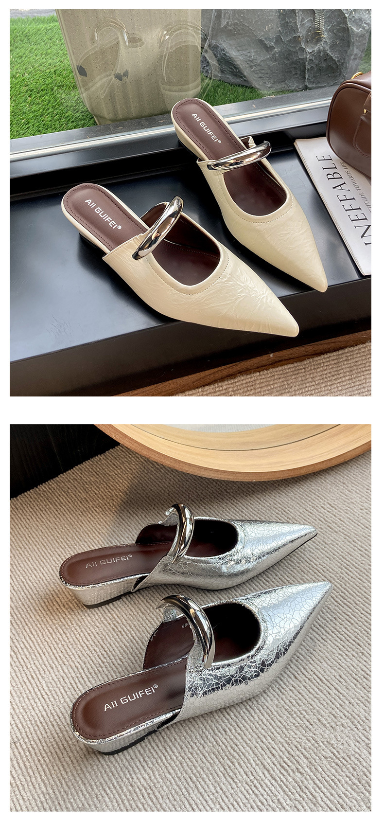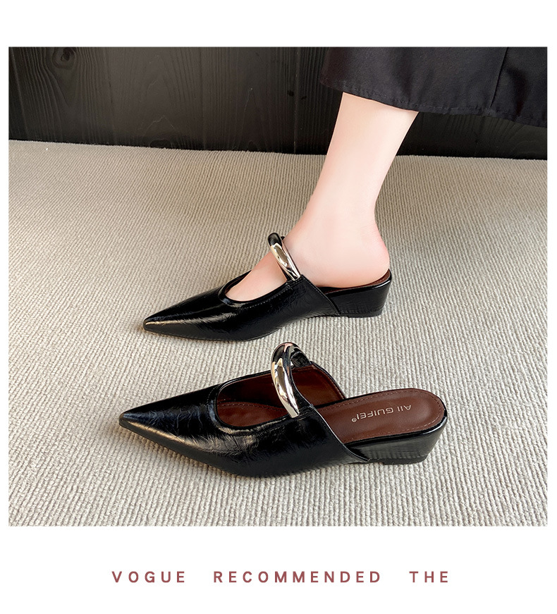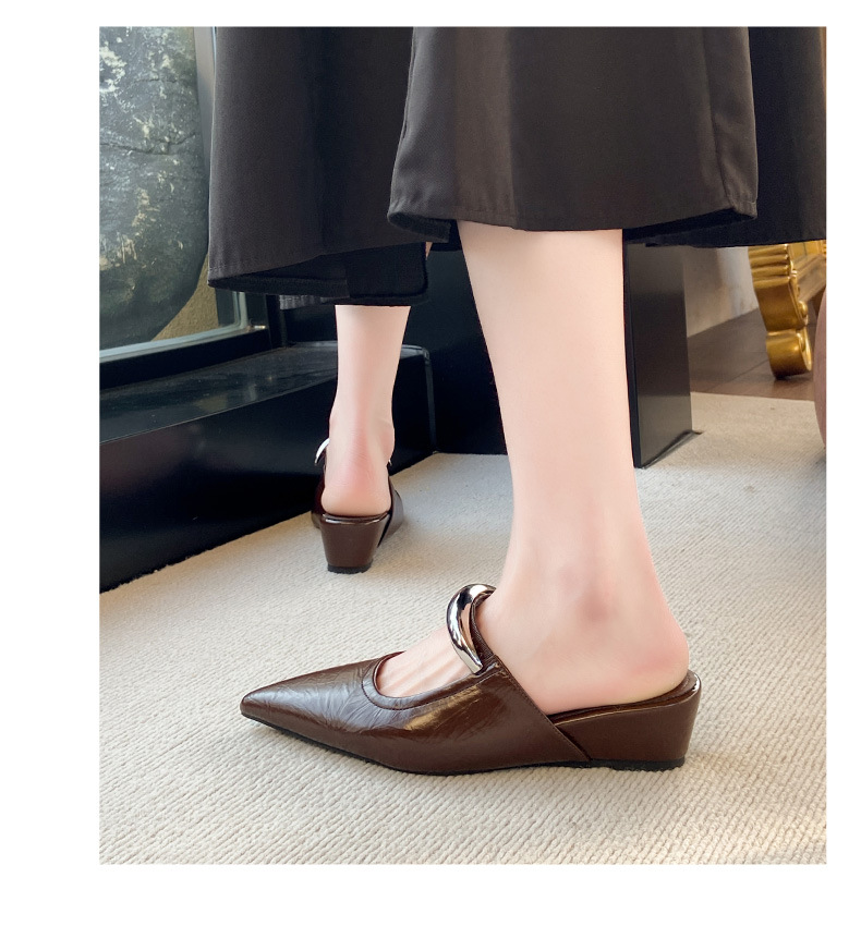 프랑스 스타일 Baotou 금속 작은 쐐기 뒤꿈치 반 슬리퍼 여성의 2025 새로운 도착 단층화 스커트 높이 뾰족한 샌들과 슬리퍼스토어 가기