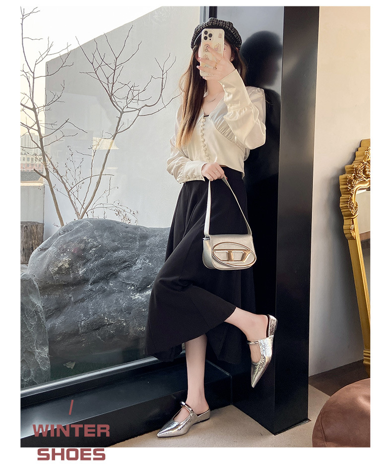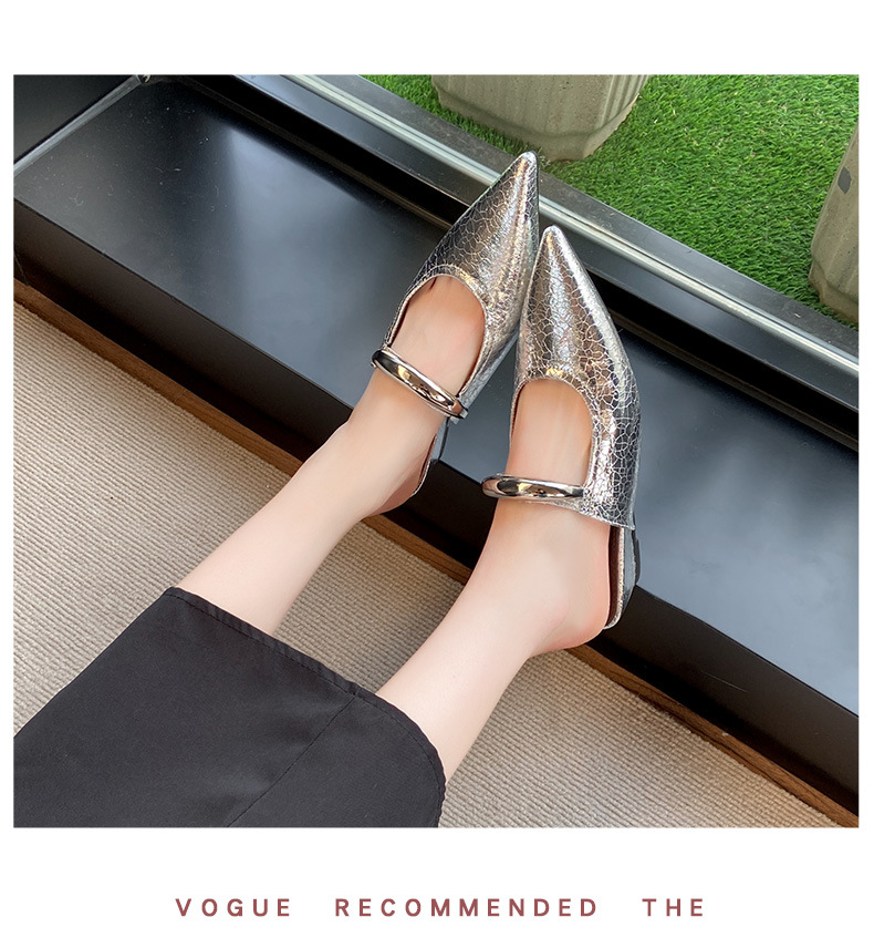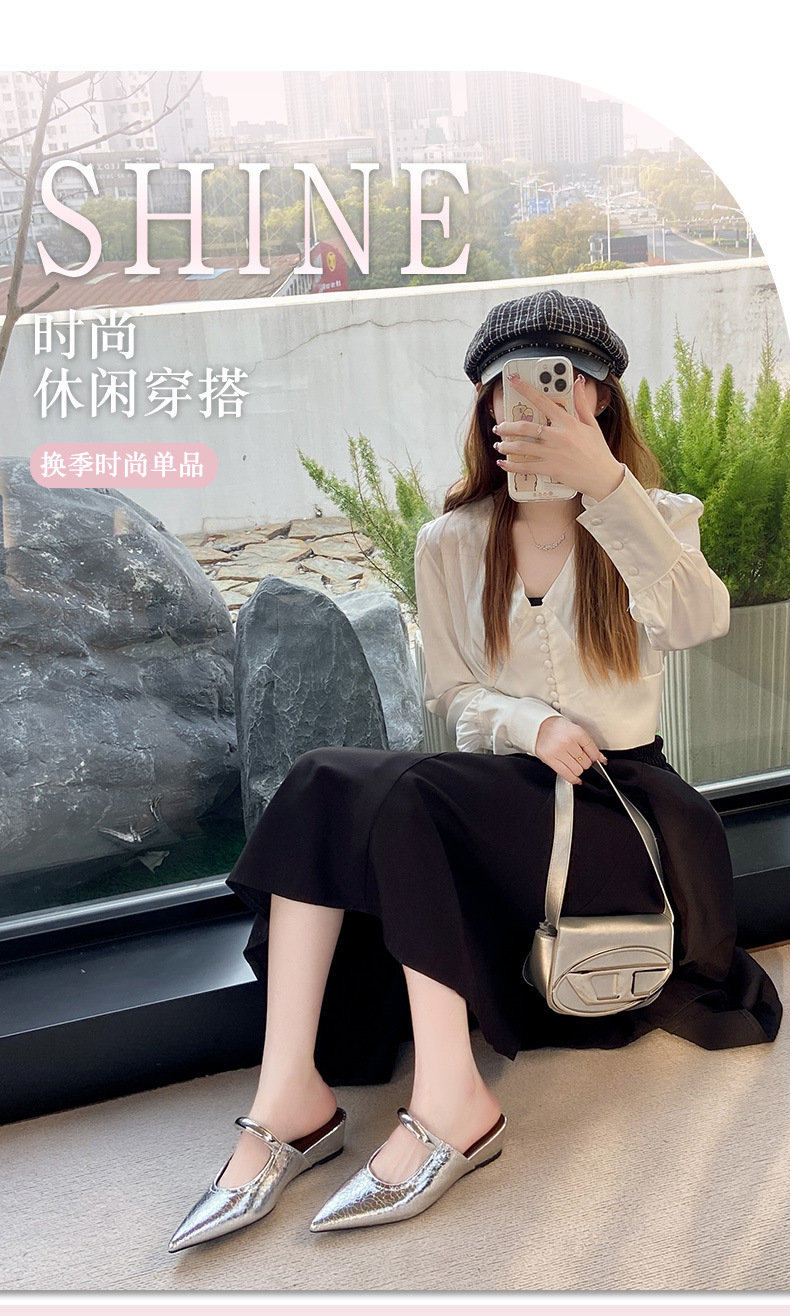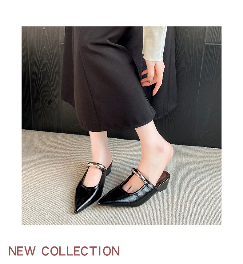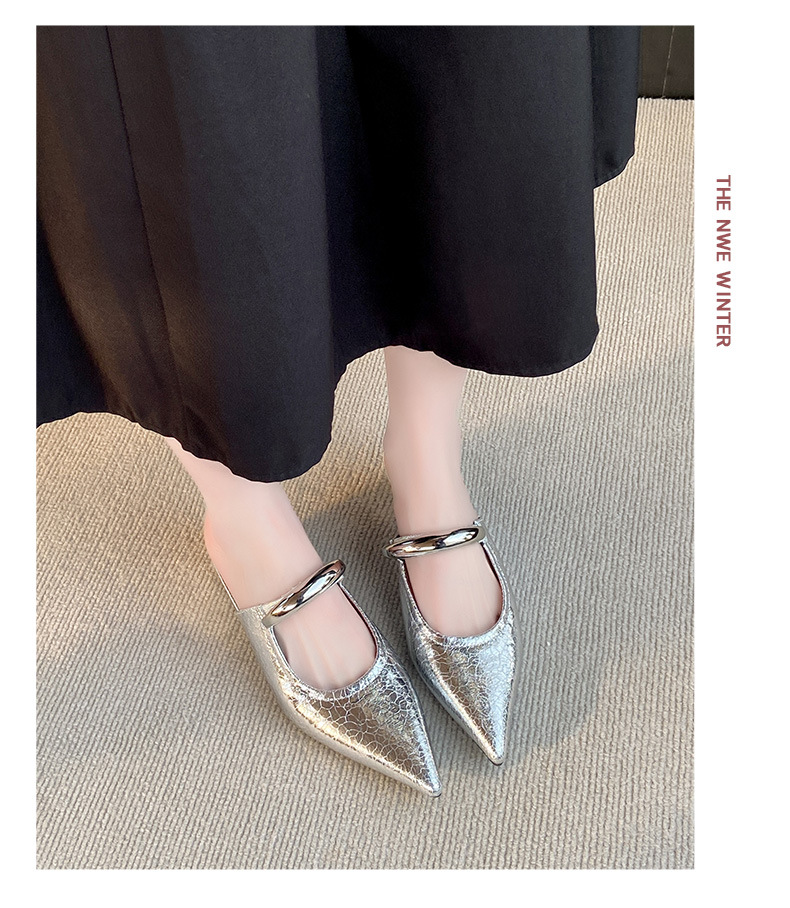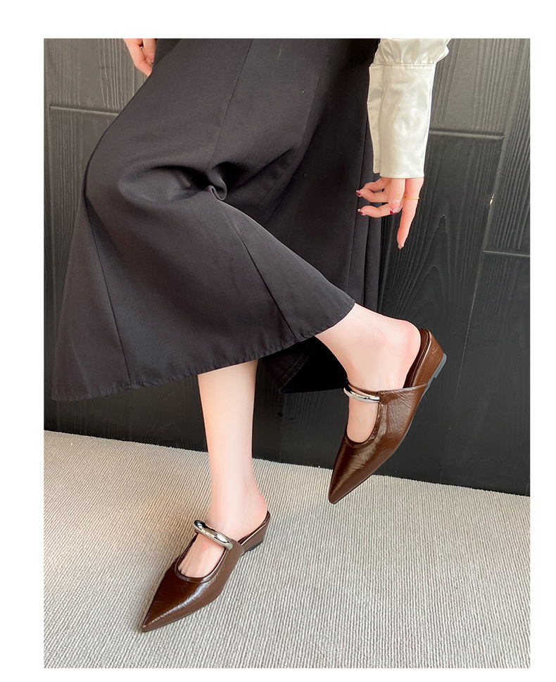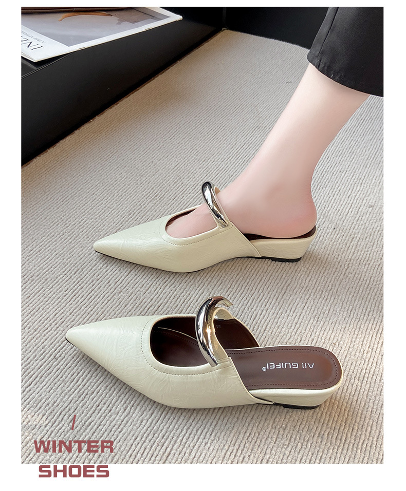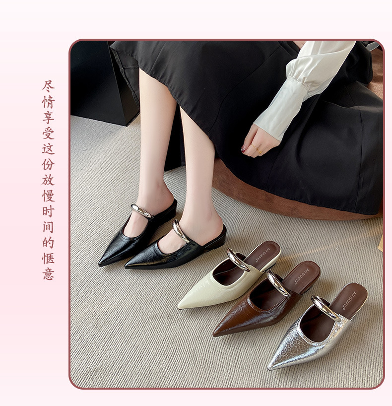 프랑스 스타일 Baotou 금속 작은 쐐기 뒤꿈치 반 슬리퍼 여성의 2025 새로운 도착 단층화 스커트 높이 뾰족한 샌들과 슬리퍼스토어 가기