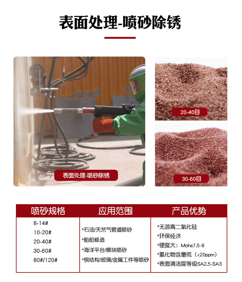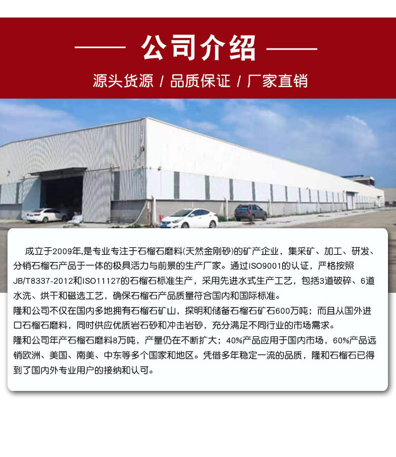Longhe는 24-100mesh 고경도 워터젯 모래 샌드블라스트 녹 제거 수처리 워터 커팅 가넷 모래 연마재를 공급합니다.