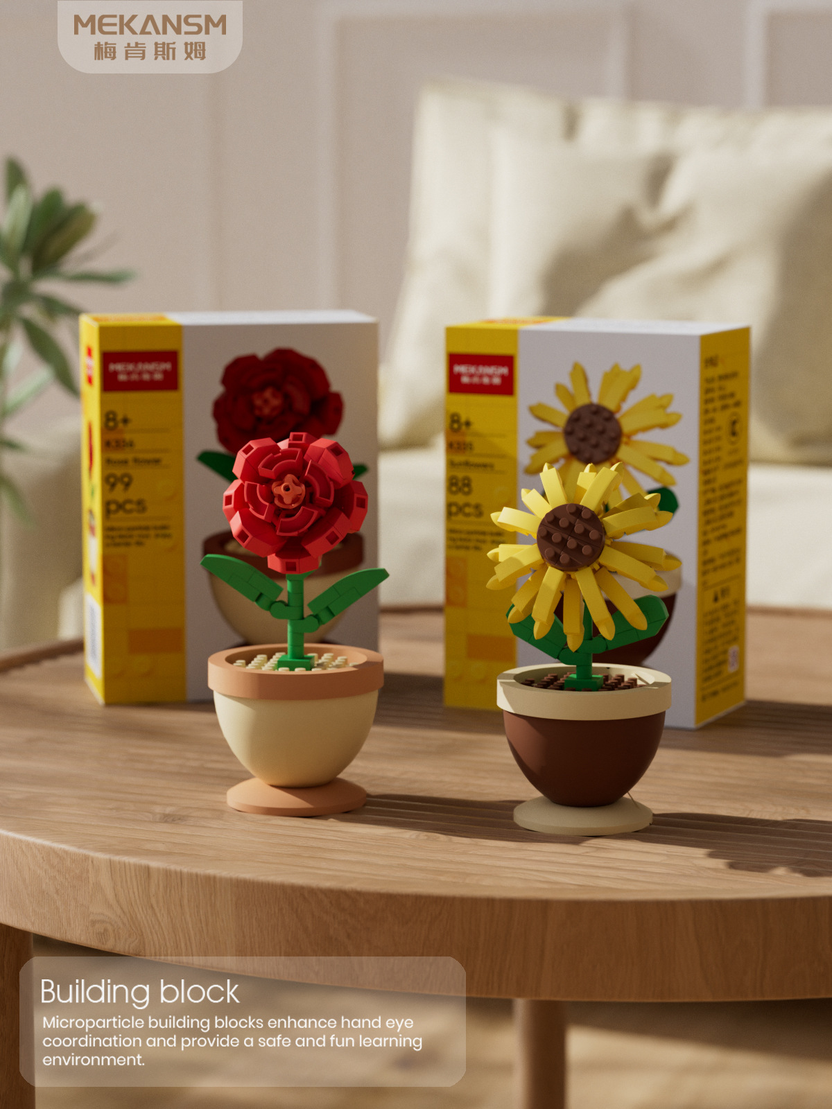 사계절 꽃의 매력, 영원한 꽃, 레고 빌딩 블록 조립 장난감 장식품과 호환되는 다육 화분, 장미, 해바라기