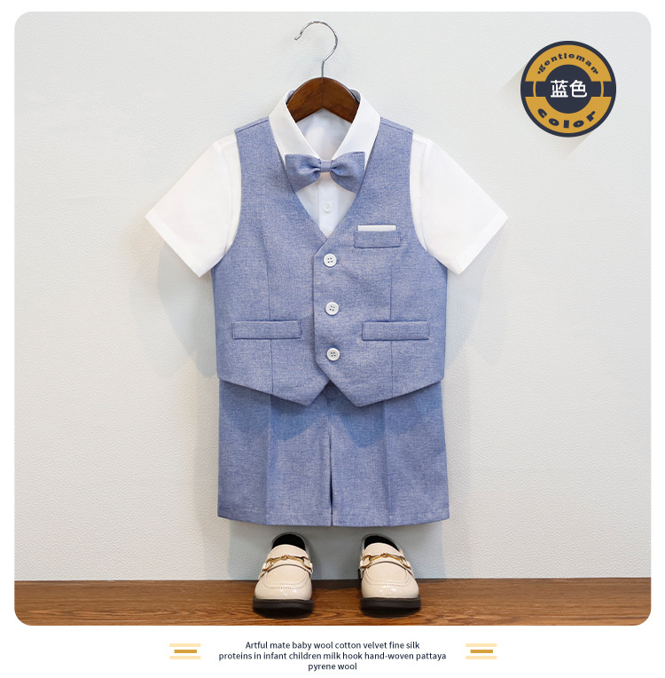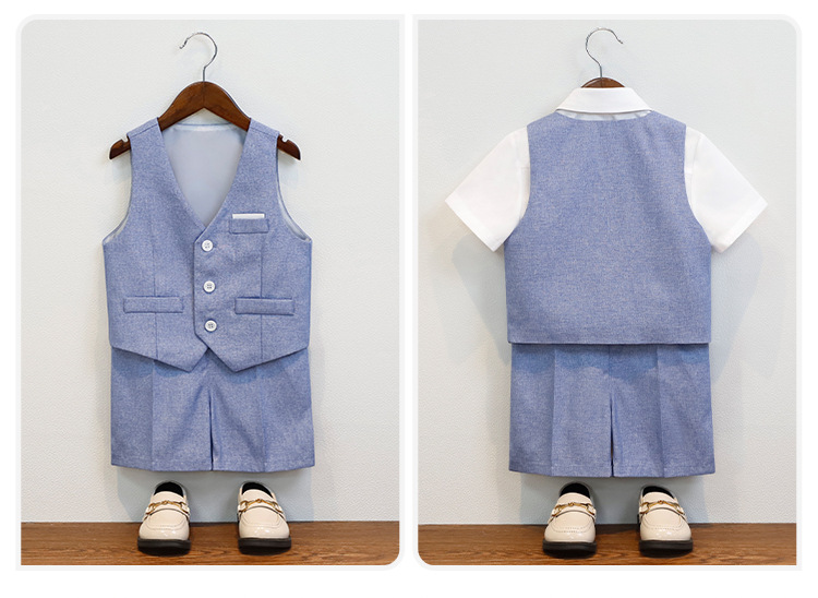 • 블루 4종 세트 (반팔 셔츠 + 조끼 + 반바지 + 나비넥타이)