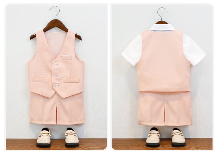 • 핑크 4종세트 (반팔셔츠+조끼+반바지+나비넥타이)