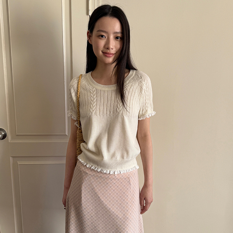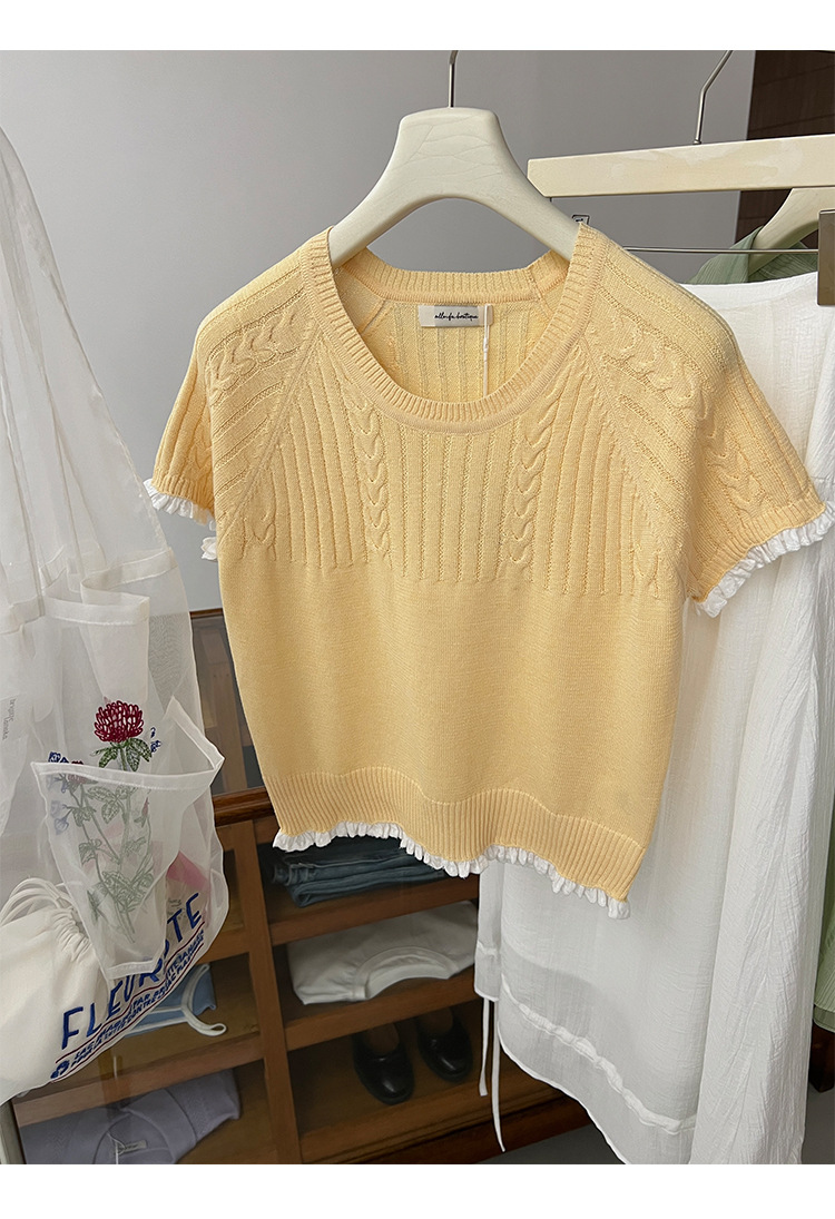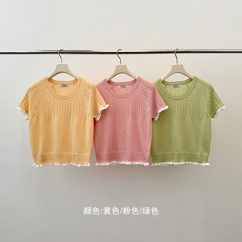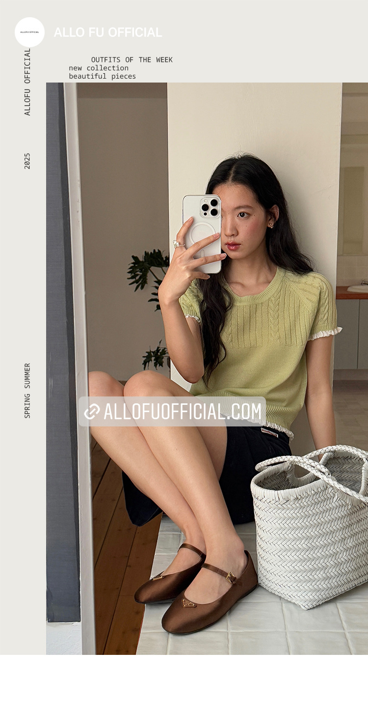 Allo Fu 패션 에이지 감소 레이스 니트웨어 여성 2025 여름 새로운 라운드 넥 캐주얼 카디건 톱 995스토어 가기