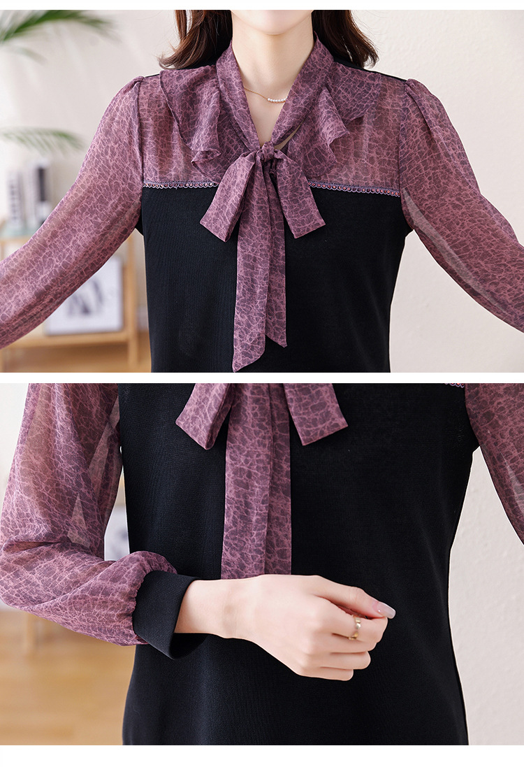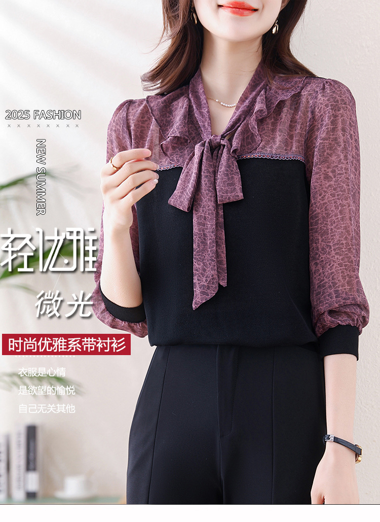프랑스 패션 가짜 2 피스 루즈 쉬폰 톱 2025 연꽃 칼라와 스트랩이있는 새로운 스타일 루즈 셔츠