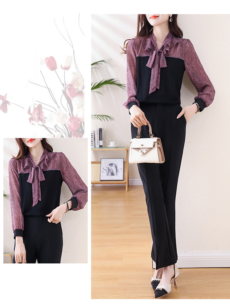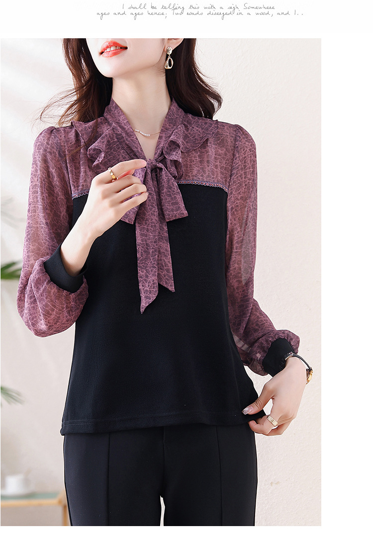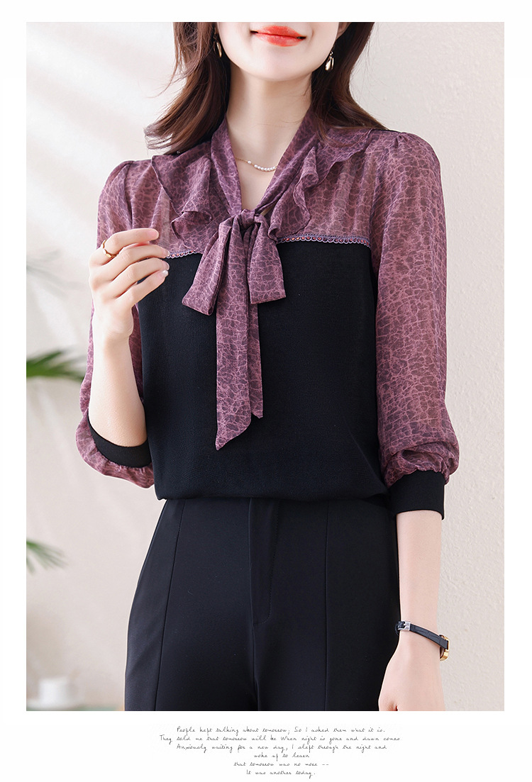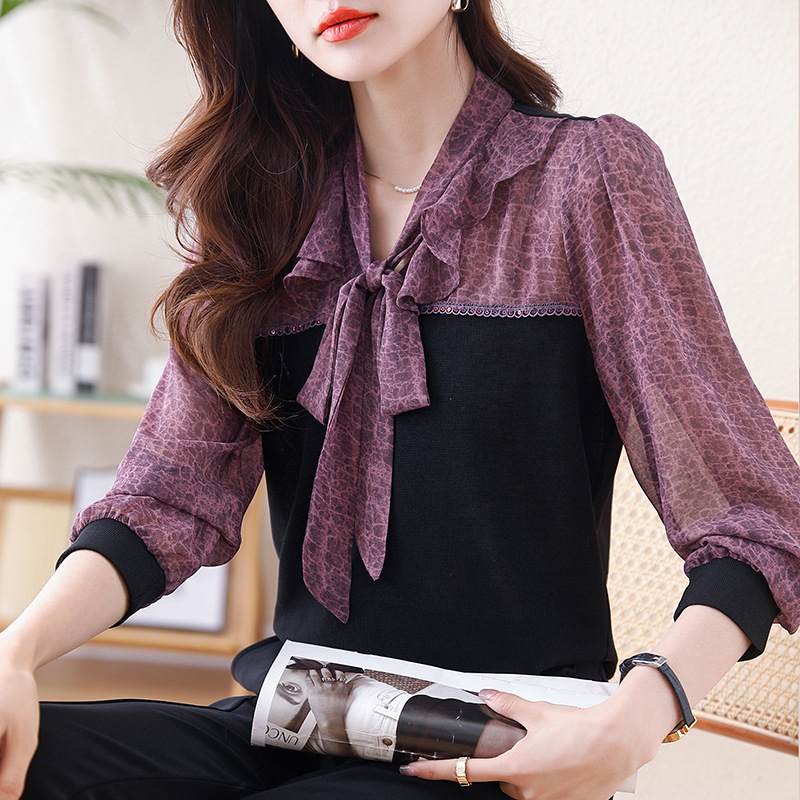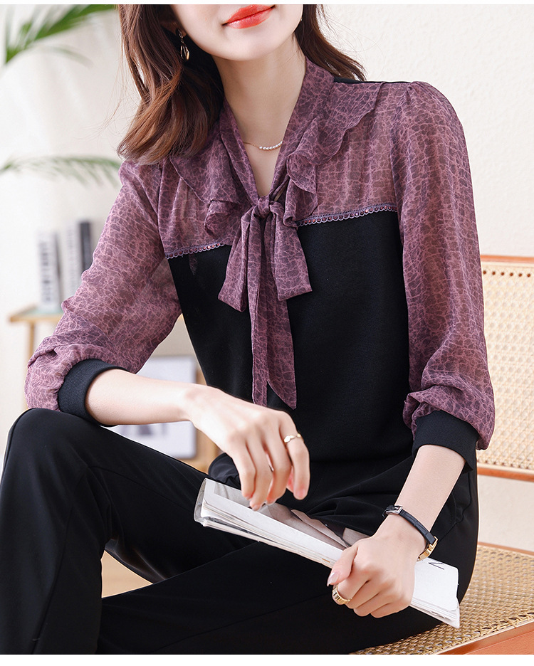 프랑스 패션 가짜 2 피스 루즈 쉬폰 톱 2025 연꽃 칼라와 스트랩이있는 새로운 스타일 루즈 셔츠스토어 가기