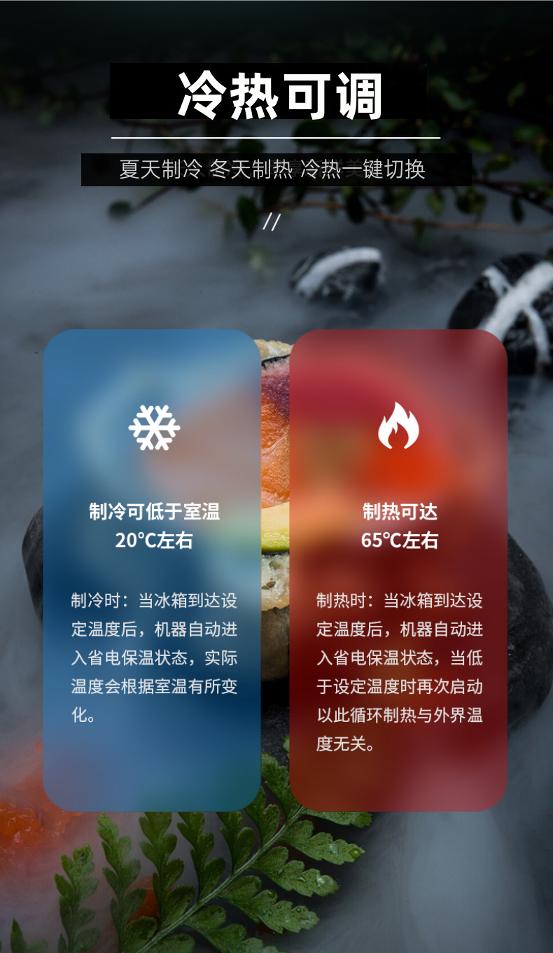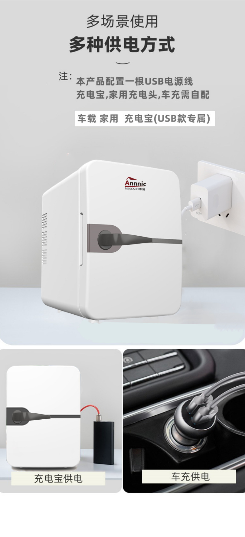 搭载成熟半导体恒温制冷技术,机身支持 USB 便捷供电,可连接充电宝、电脑、车载 USB 接口等多种电源使用。整体功耗亲民,运行稳定低噪,便携轻巧易挪动,日常居家收纳、办公存放、短途随行都能使用。依靠半导体无压缩制冷结构,机身耐用易维护,满足轻量冷藏的日常需求。
