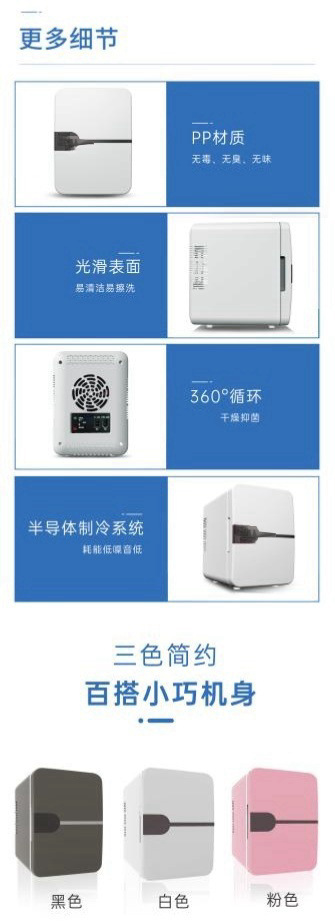 经典耐看的实用机型,4 升小巧容量搭配精致装饰把手,开合顺畅稳固,外观造型简约大方。机身不占用多余空间,可摆放桌面、梳妆台、宿舍、客房等位置;内部收纳分区合理,能存放护肤品、饮品、零食等小件物品,制冷运行平稳,颜值与实用性兼具,内销零售与礼品搭配出货都十分合适。