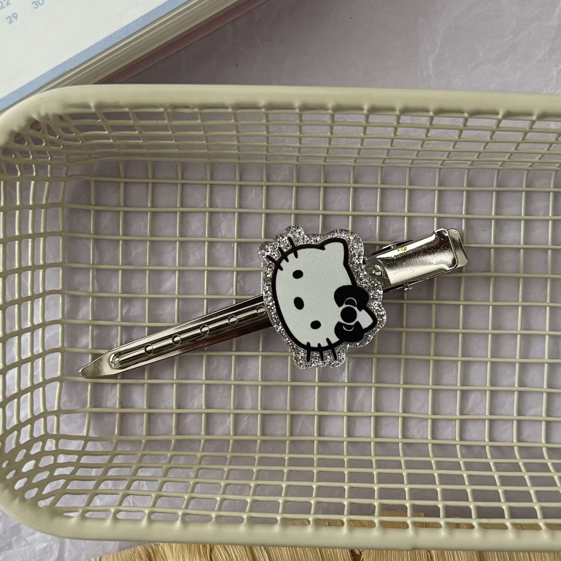 검은 반짝이 고양이 긴 머리핀 일본식 고급 아크릴 활 사이드 클립 덕빌 클립 헤어 액세서리스토어 가기