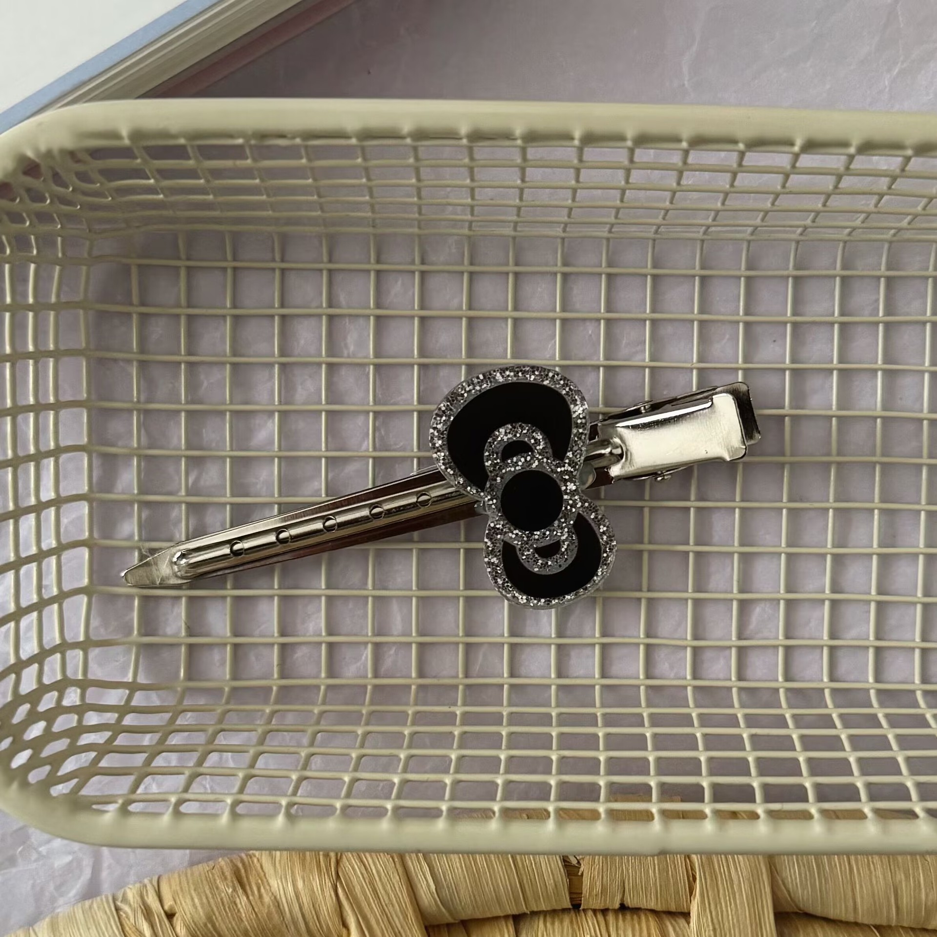 검은 반짝이 고양이 긴 머리핀 일본식 고급 아크릴 활 사이드 클립 덕빌 클립 헤어 액세서리