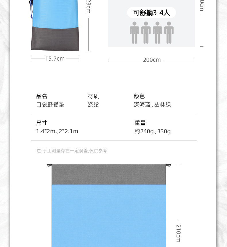 • [새롭게 업그레이드된 휴대용 모델] 딥씨블루 200*210 (무료 : 바닥못 4개 + 후크 + 수납가방)