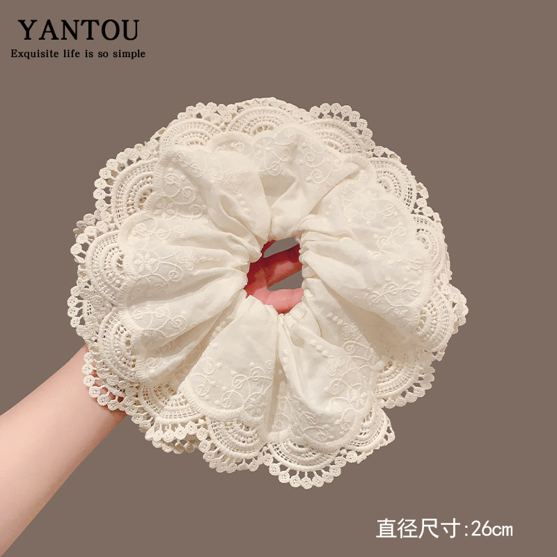 부드러운 레이스 아이보리 레이스 대형 장내 헤어 링 여성 한국 스타일 대형 더블 레이어 헤드 플라워 고급 헤어 로프 헤어 액세서리