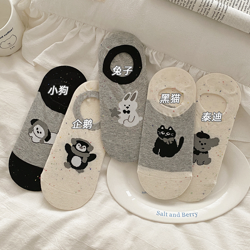 실리콘 미끄럼 방지 보트 양말 여름 얇은 일본식 귀여운 만화 양말 여성용 원사 양말스토어 가기