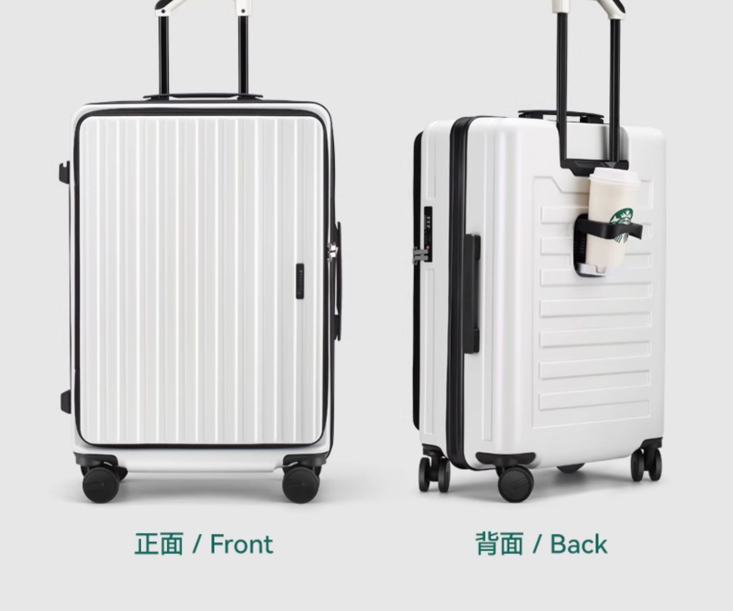 • 26inch (YKK 지퍼 측면 개구부 + 확장 레이어 개구부는 28inch + 물컵 홀더와 동일)