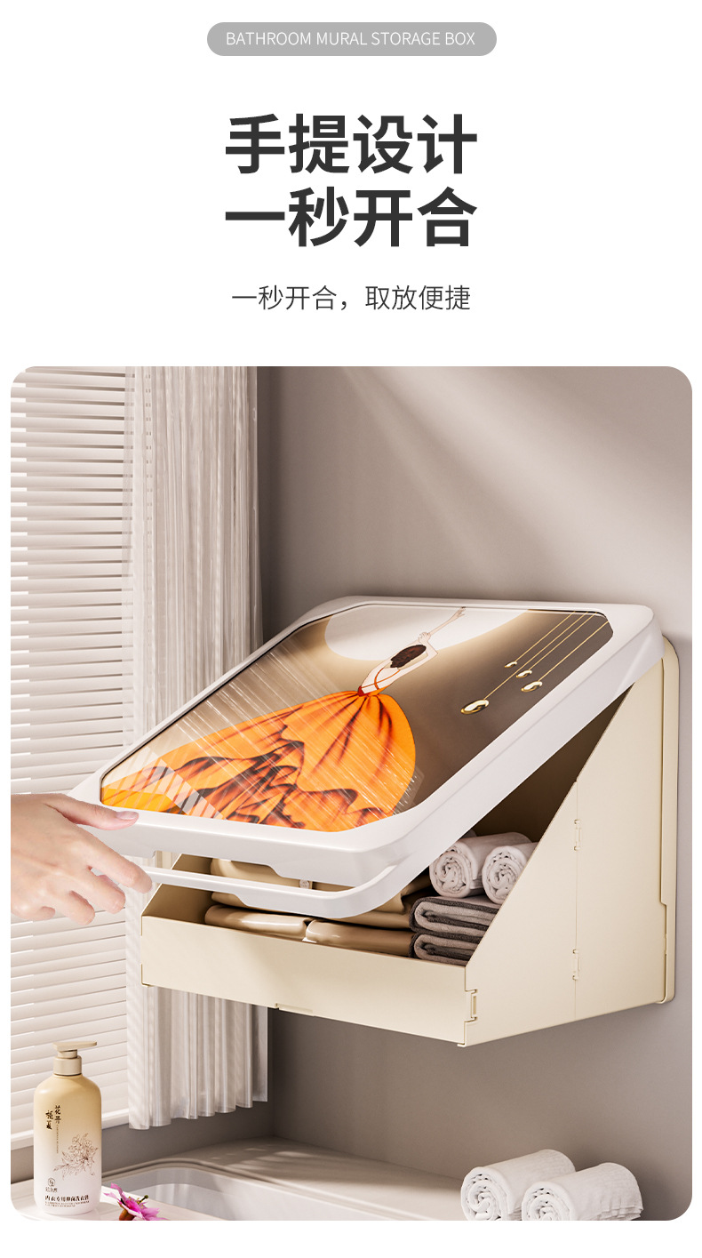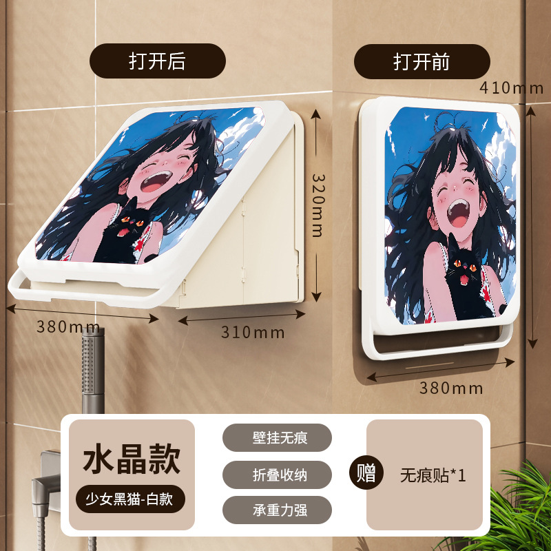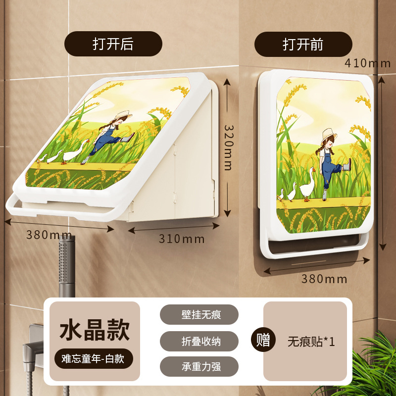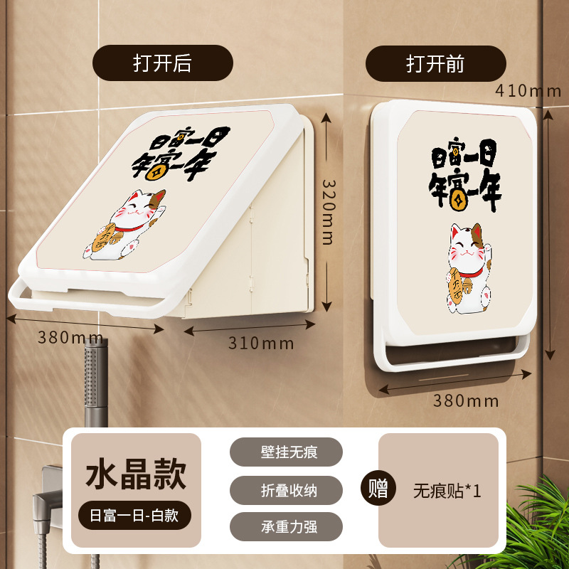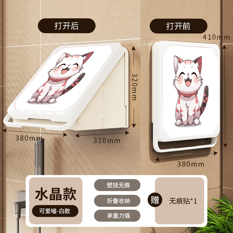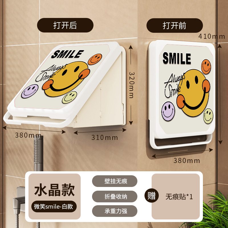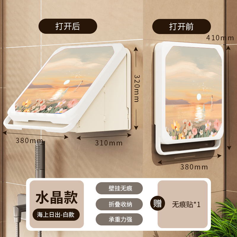 욕실 벽화 수납함 화장실 무타공 벽걸이 샤워실 옷 수납 접이식 선반