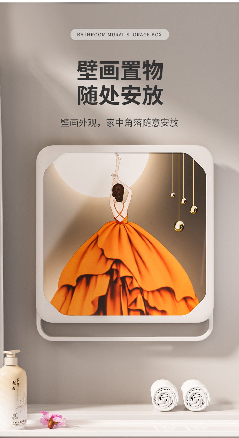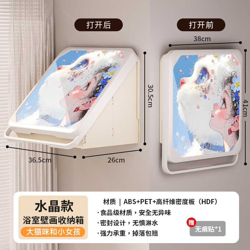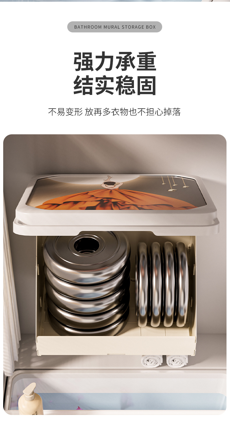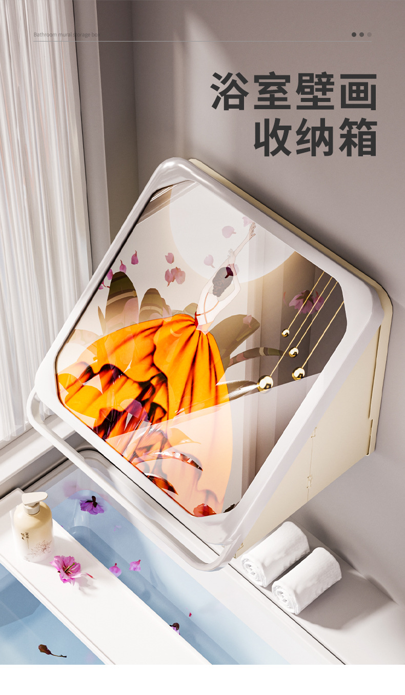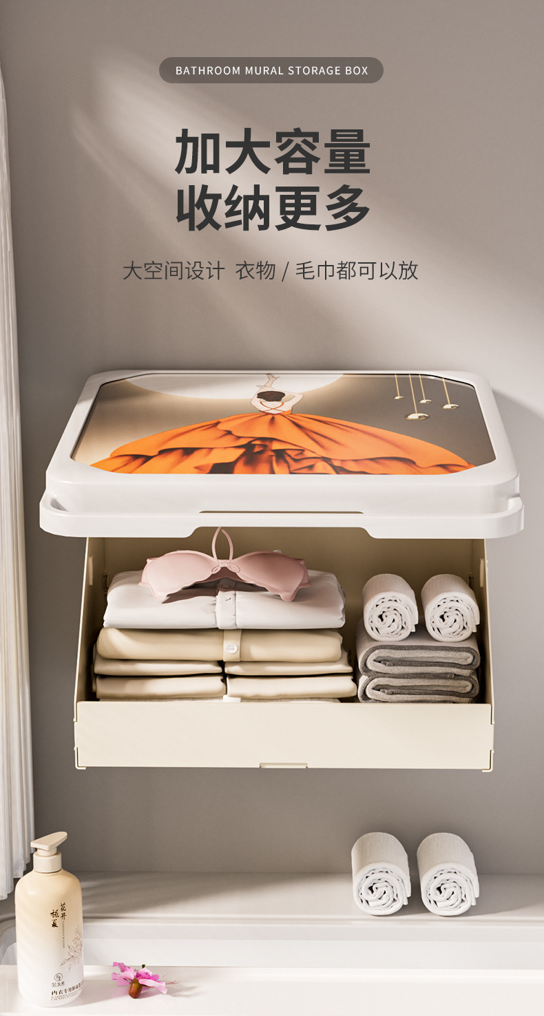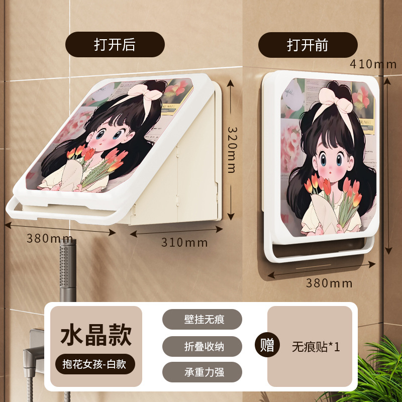 욕실 벽화 수납함 화장실 무타공 벽걸이 샤워실 옷 수납 접이식 선반