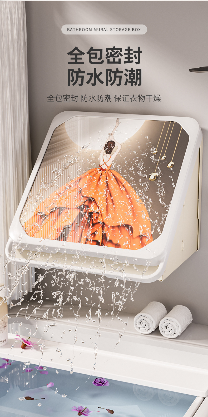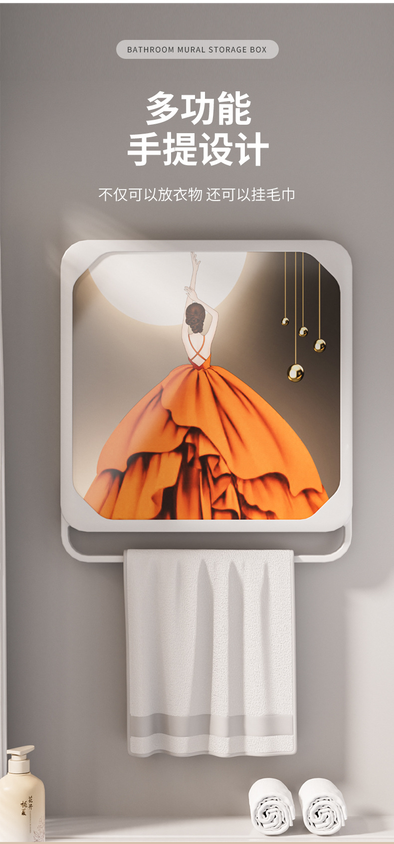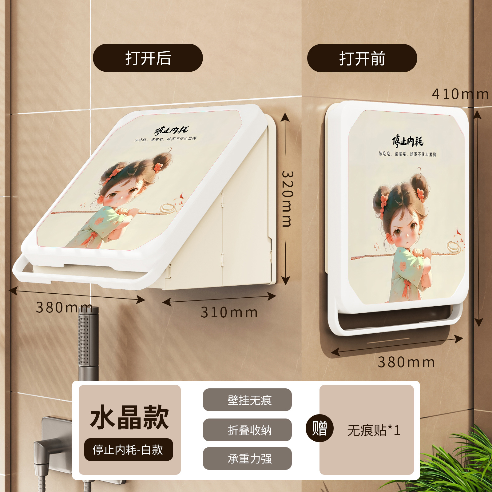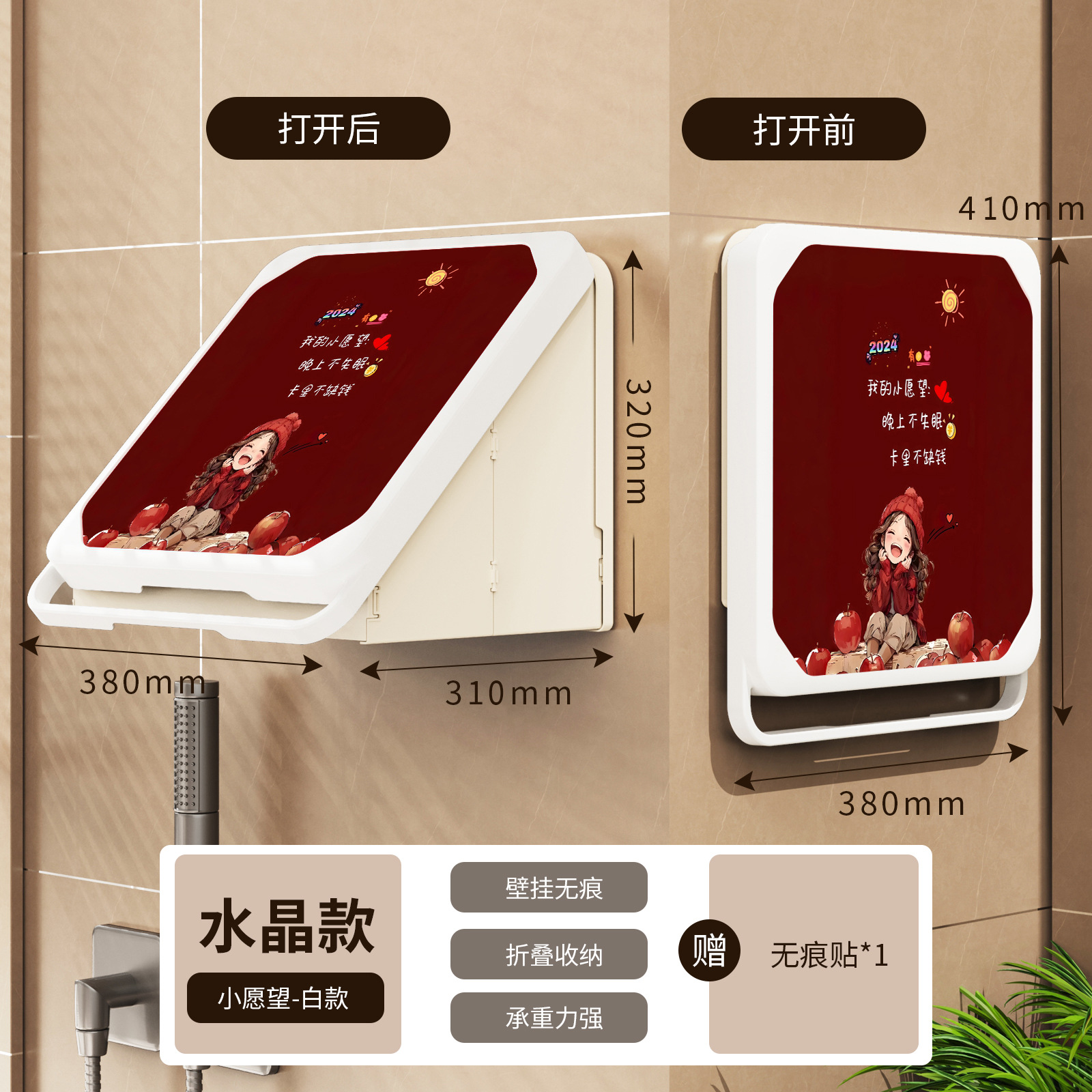 욕실 벽화 수납함 화장실 무타공 벽걸이 샤워실 옷 수납 접이식 선반