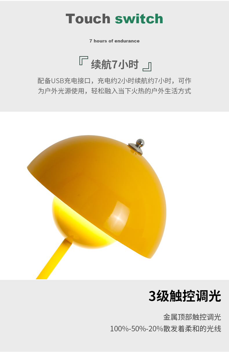 • 노란색 충전 모델(무한 조광 가능) USB 인터페이스