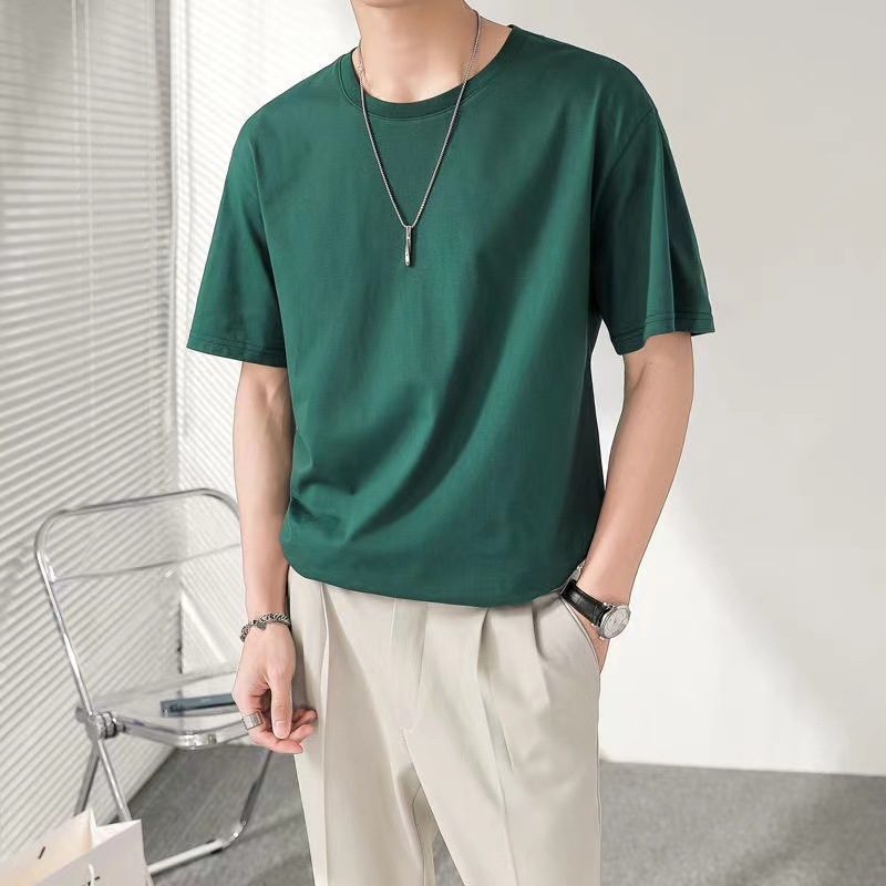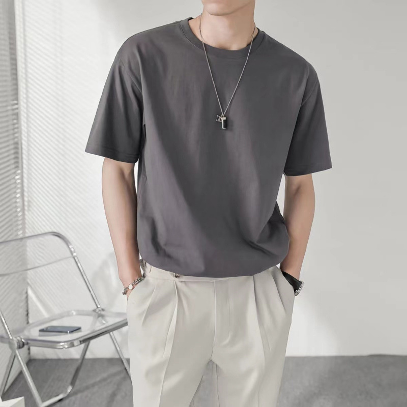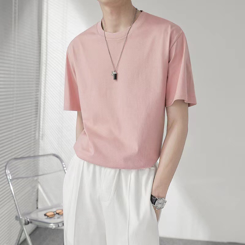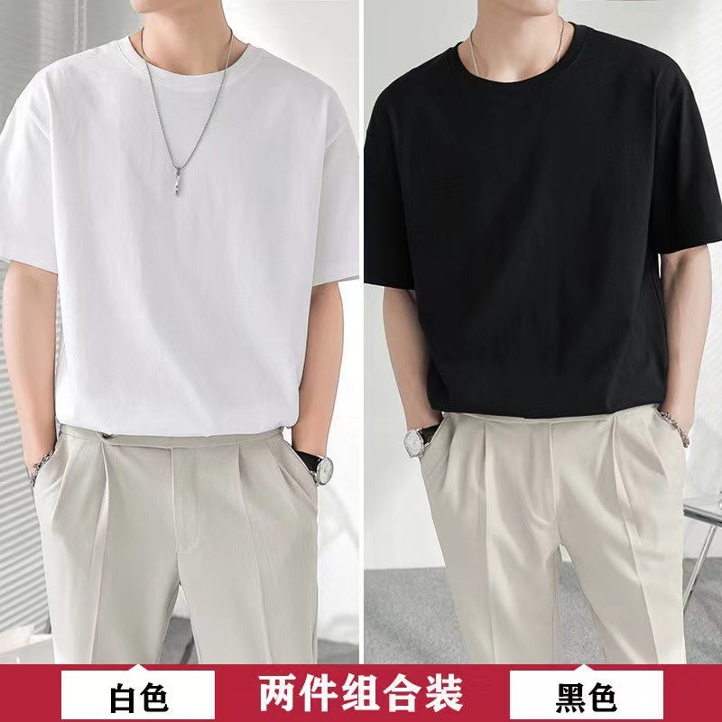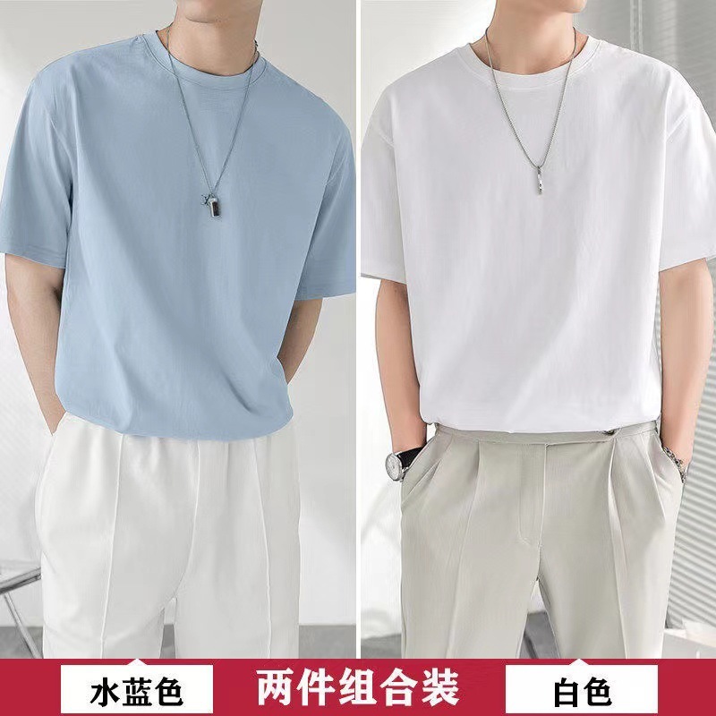 2 피스 라운드 넥 반팔 티셔츠 남성용 여름 솔리드 컬러 퓨어 코트베이스 셔츠 간단한 루즈 하이 엔드 센스 탑스토어 가기