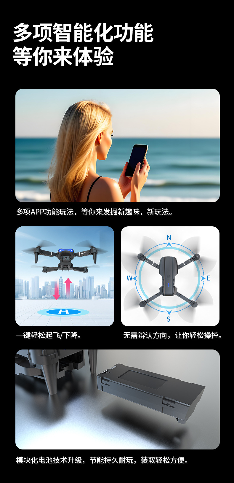 E99 스크린 제어 드론 듀얼 카메라 고화질 항공 사진 E88 고정 높이 어린이 원격 제어 장난감 항공기 크로스 보더 접이식