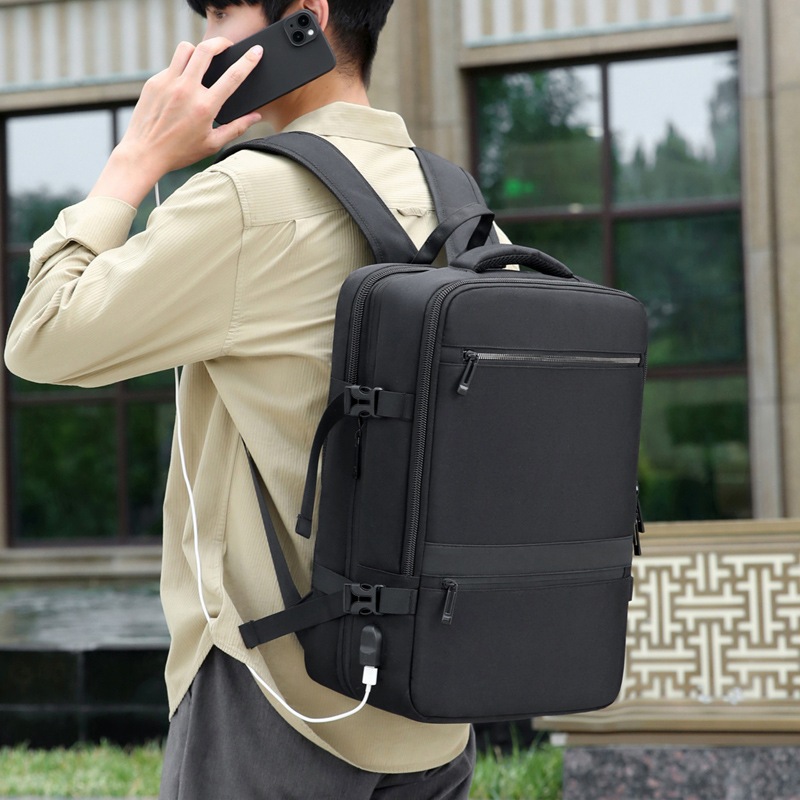 새로운 패션 비즈니스 배낭 남자 USB 충전 다기능 컴퓨터 가방 가죽 필름 대용량 학생 배낭스토어 가기