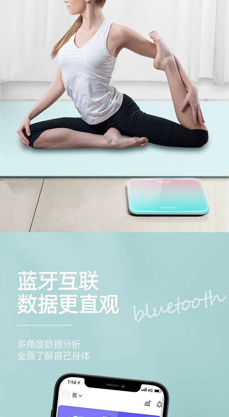 Konka 지능형 체지방 스케일 홈 체중 규모 체중 감량 정확한 체중 측정 인터넷 휴대 전화 앱 체지방 측정스토어 가기