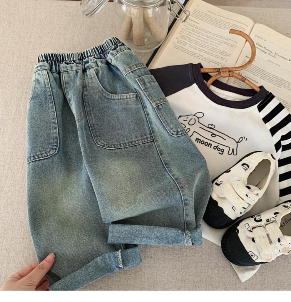 어린이 청바지 봄과 가을 바지 새로운 어린이 봄 바지 느슨한 어린이 바지 트렌디 쿨 스트리트 바지 트렌디스토어 가기
