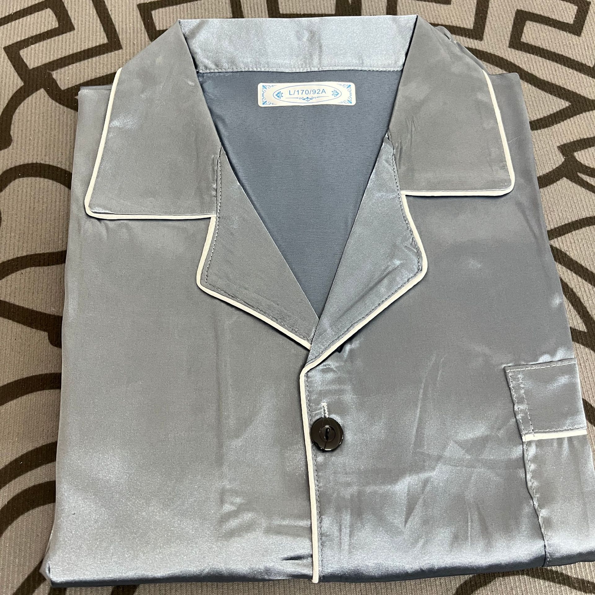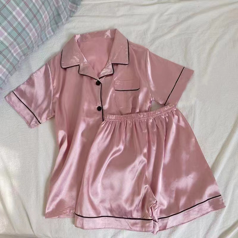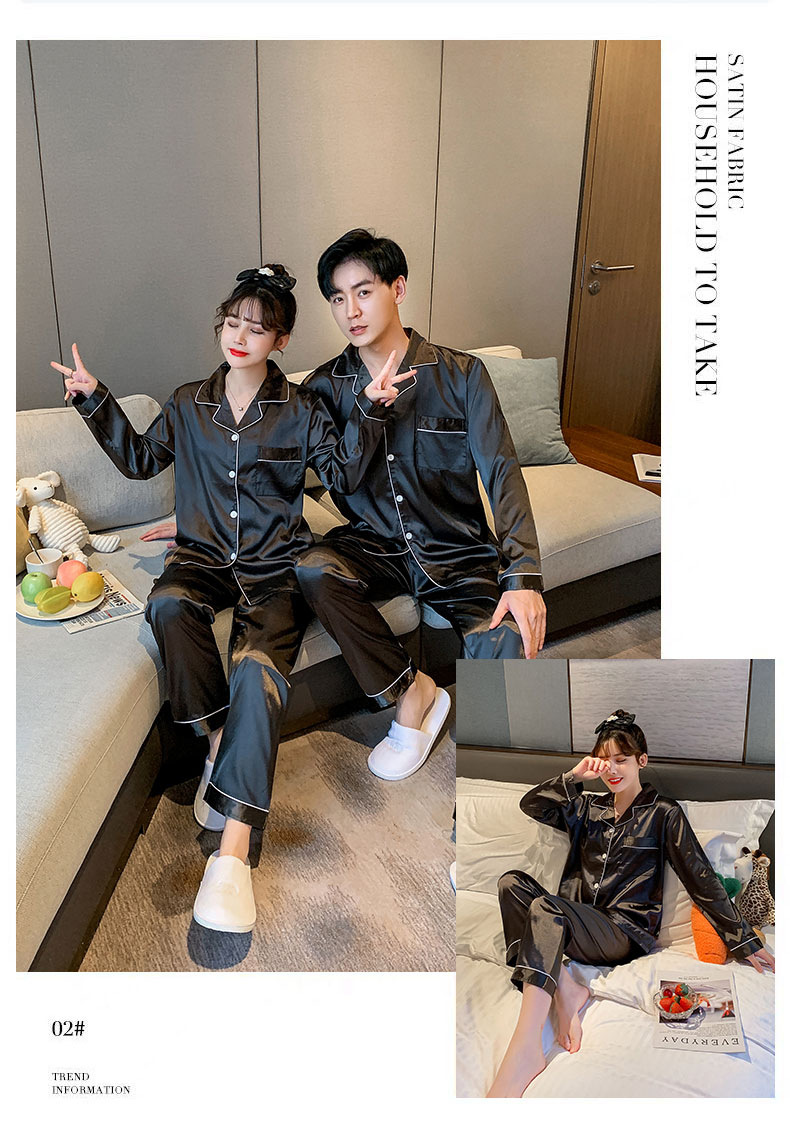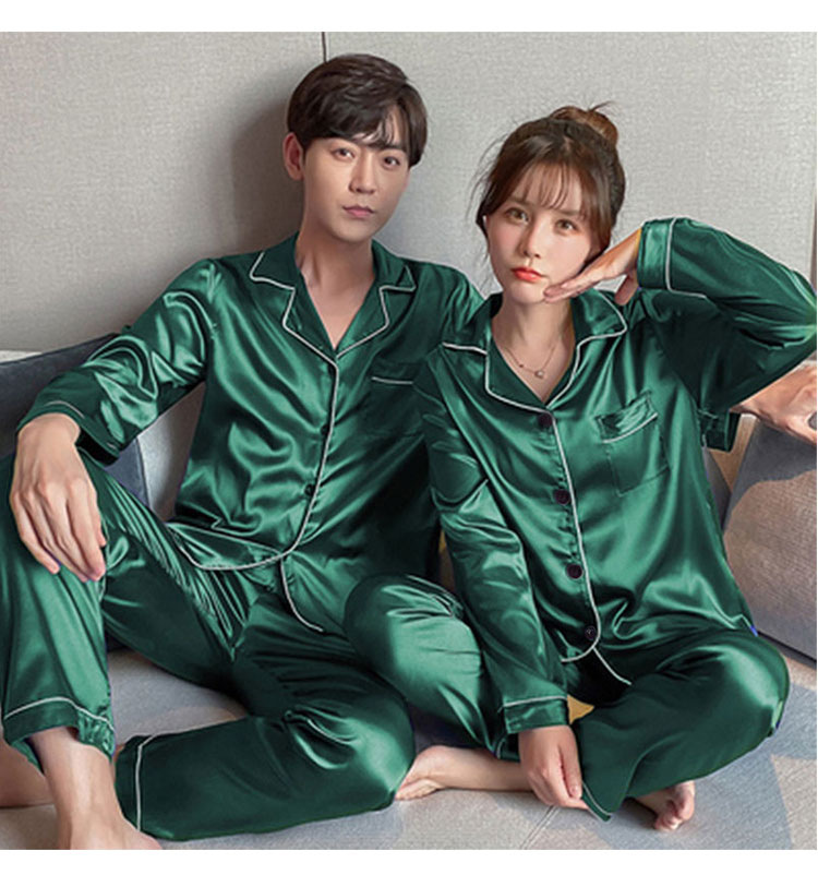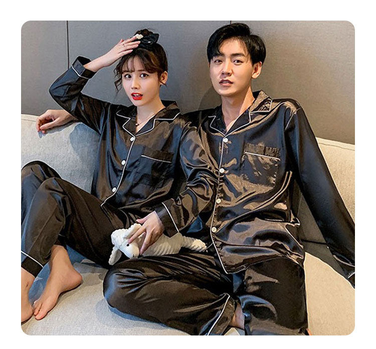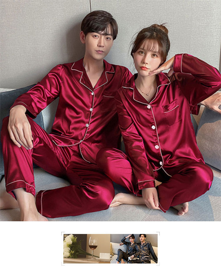 커플 잠옷 얼음 실크 긴팔 바지 봄, 가을 얇은 느슨한 대형 단색 간단한 시뮬레이션 실크 가정 의류 세트