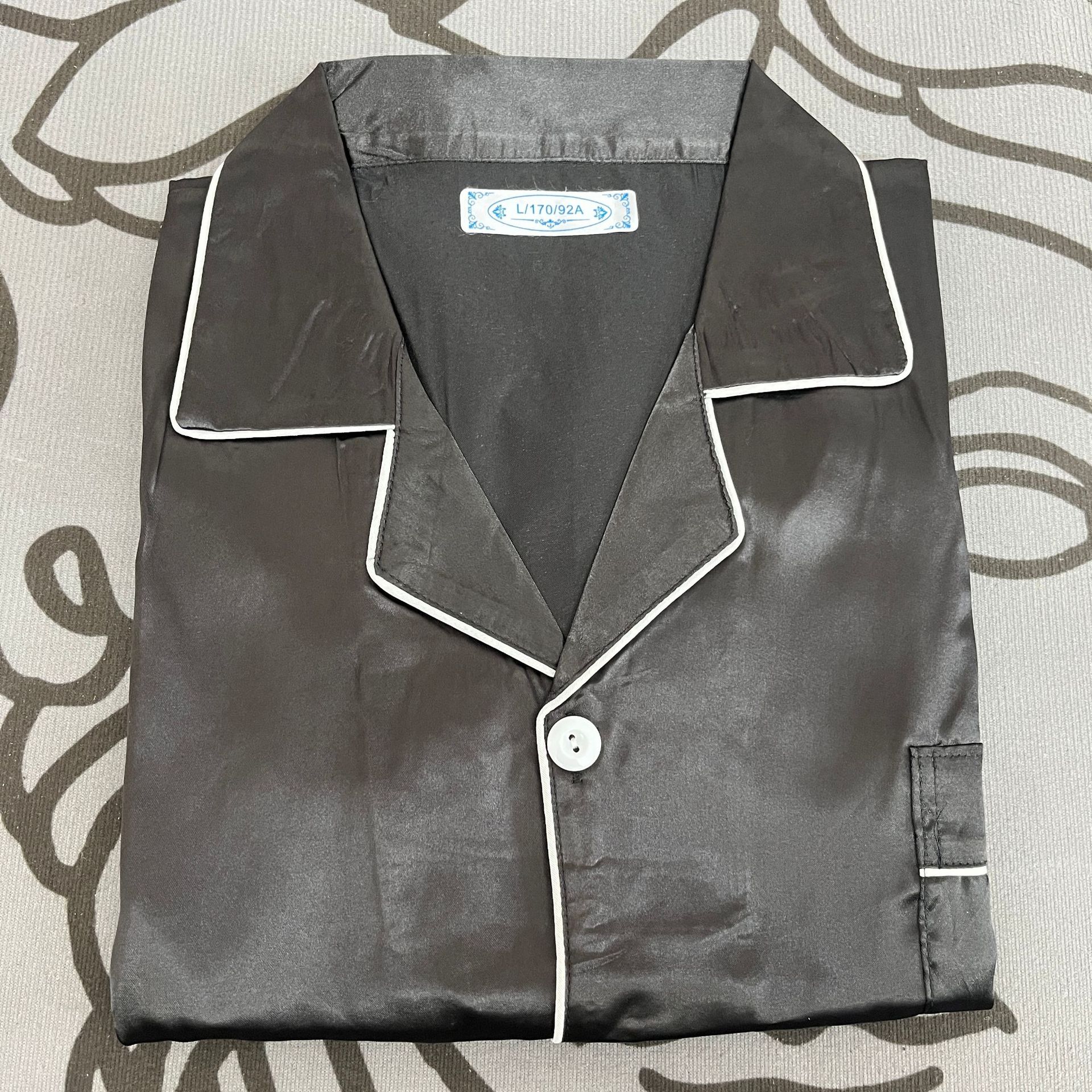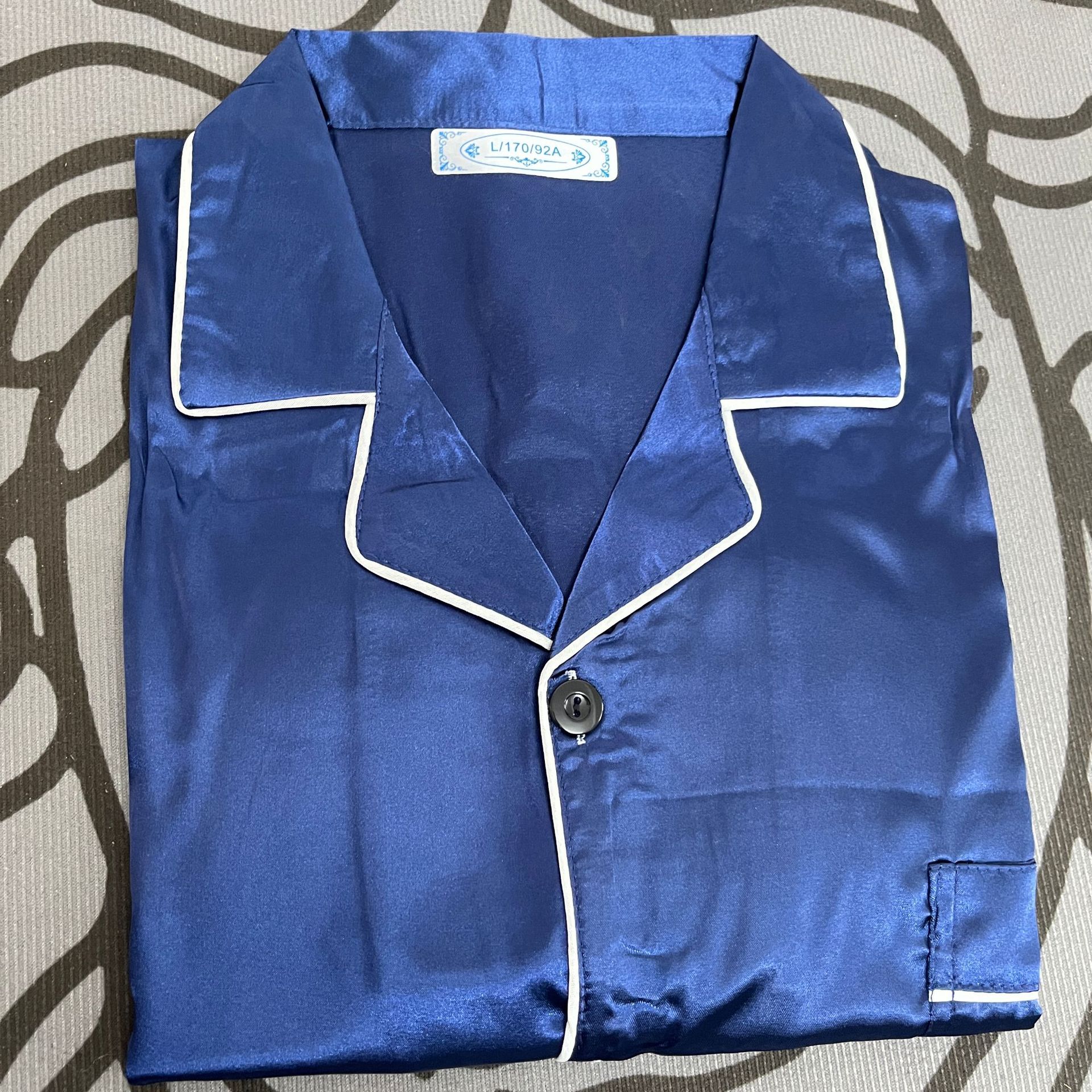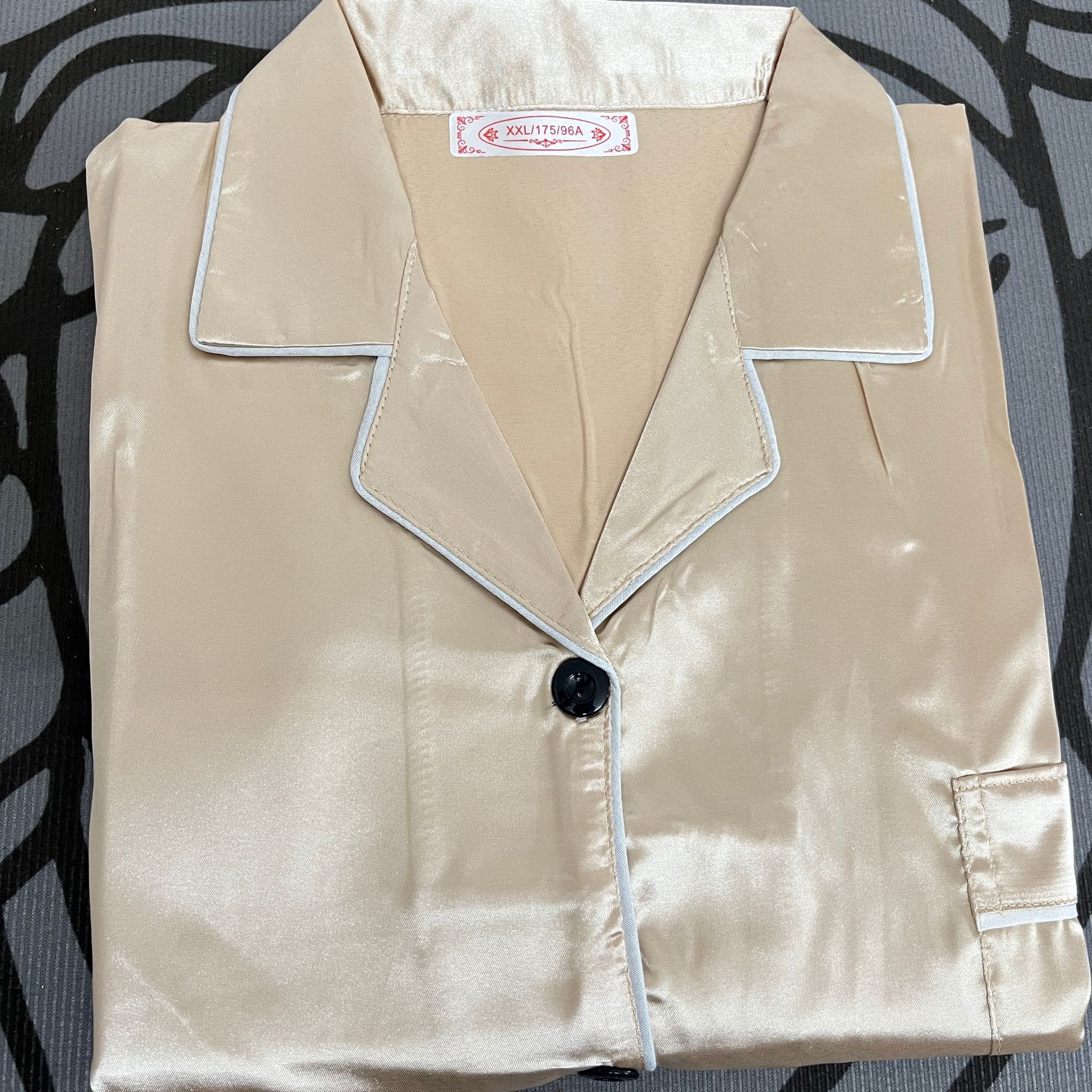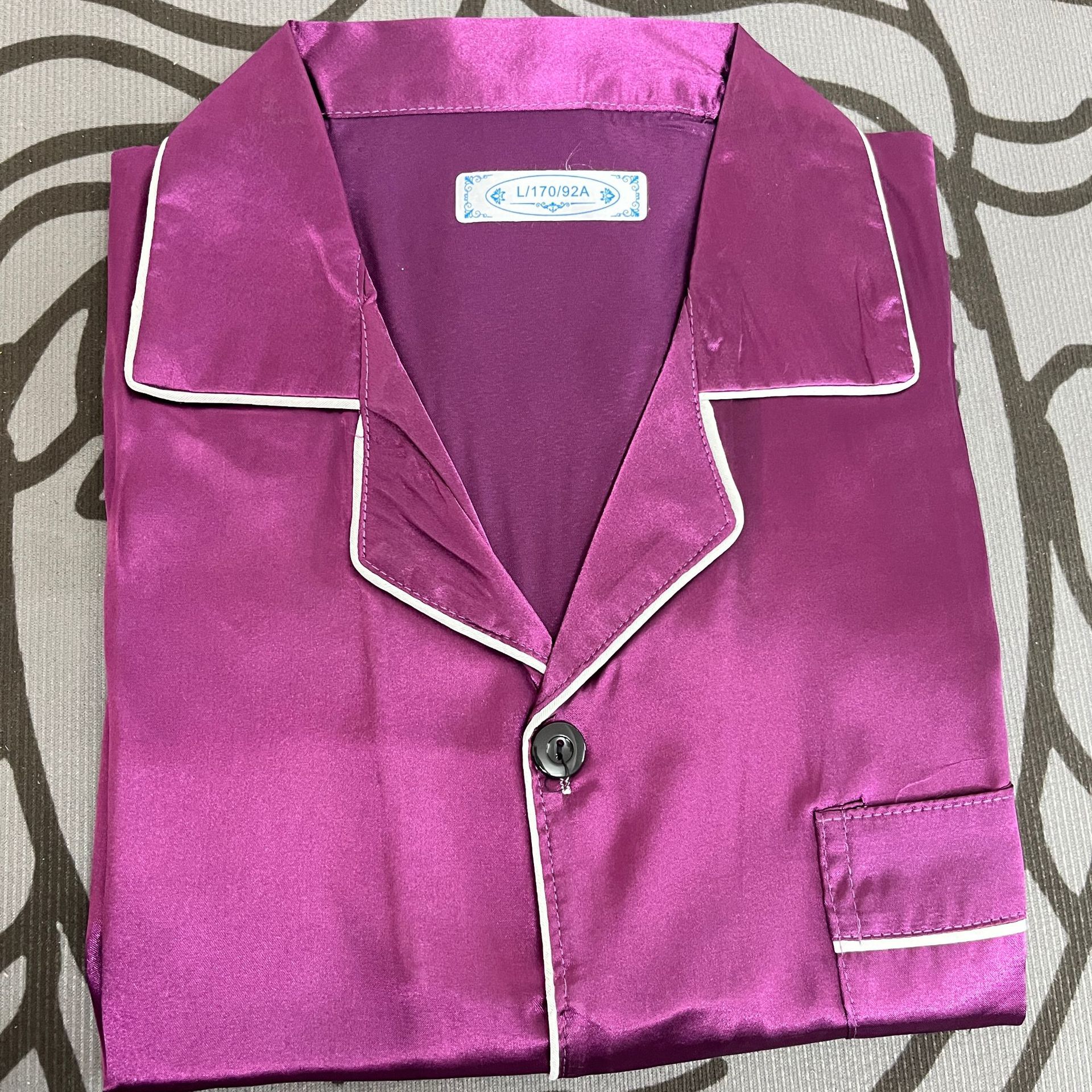 커플 잠옷 얼음 실크 긴팔 바지 봄, 가을 얇은 느슨한 대형 단색 간단한 시뮬레이션 실크 가정 의류 세트