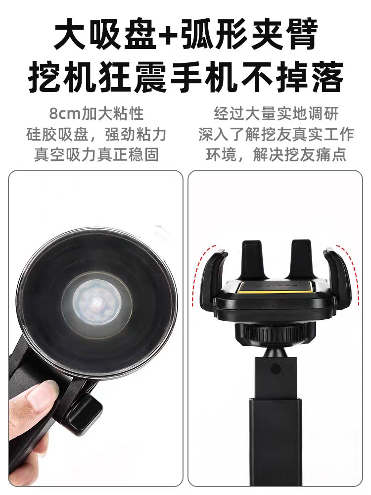 • 【업그레이드 버전】 굴삭기 휴대폰 거치대 8cm 대형 흡착판, 길이 조절 불가