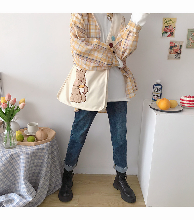 여학생을 위한 일본 캔버스 가방, 한국식 책 가방, 심플하고 다재다능한 대학 클래스 가방, 대용량 싱글 숄더 작은 사각형 가방스토어 가기