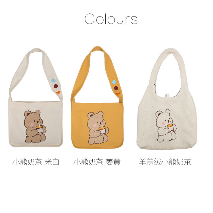 • 밀크티를 마시는 곰 단추 스타일의 오프화이트