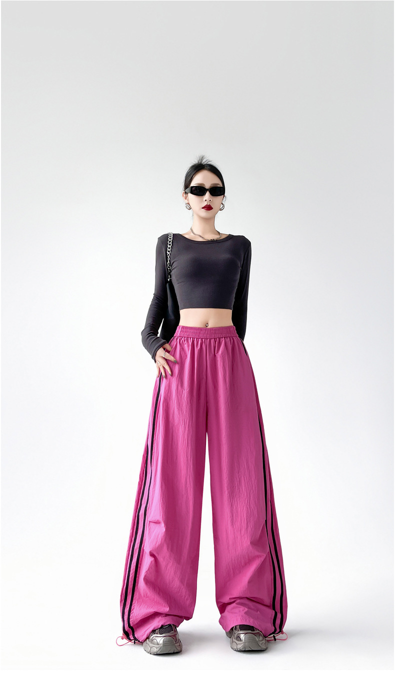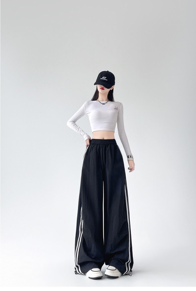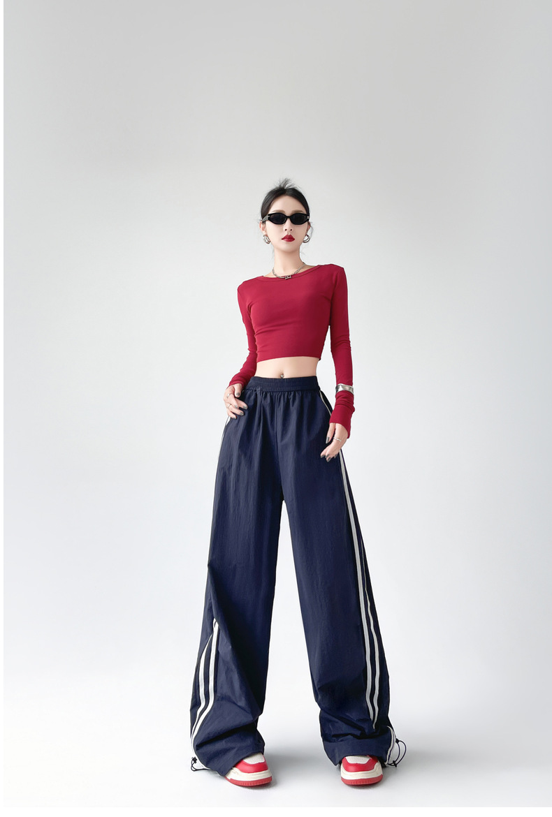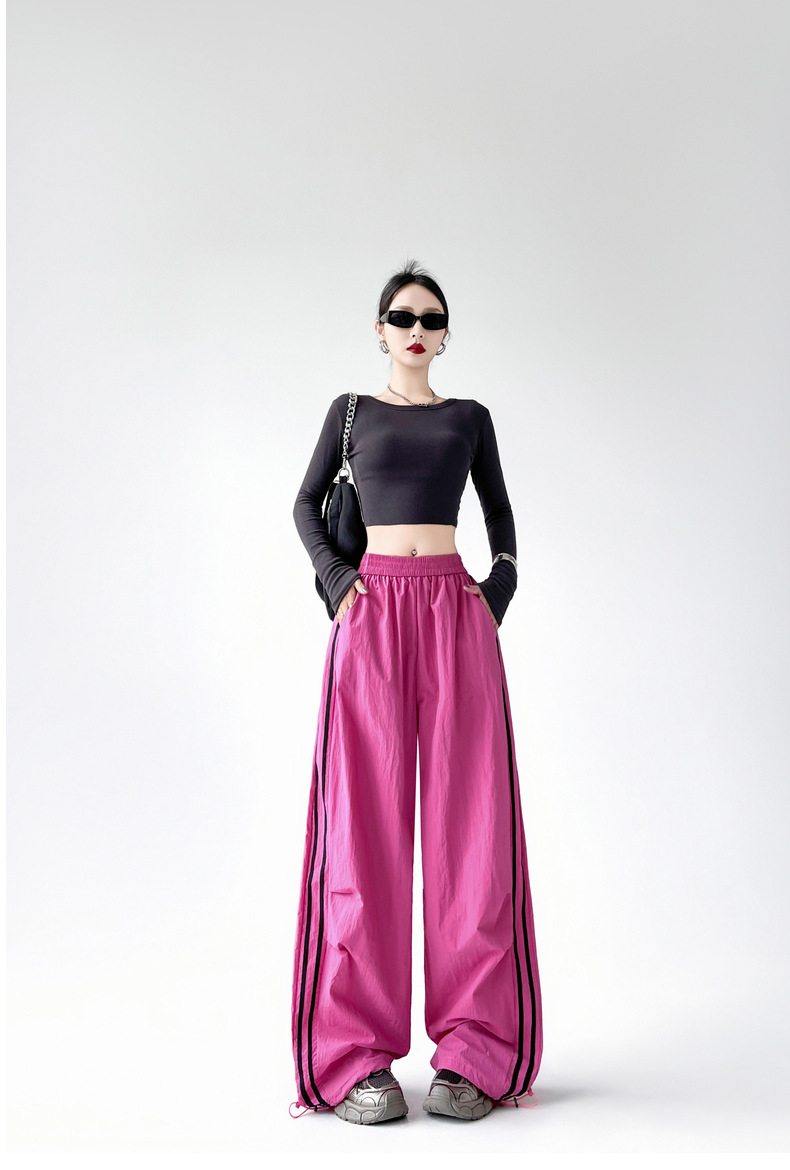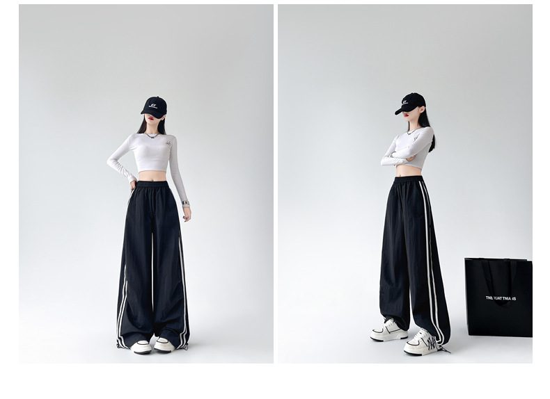 아메리칸 스트라이프, 여성용 스트레이트 루즈 트렌디 올매치 스포츠 바지 하이 스트리트 패션 브랜드 와이드 레그 캐주얼 바지스토어 가기