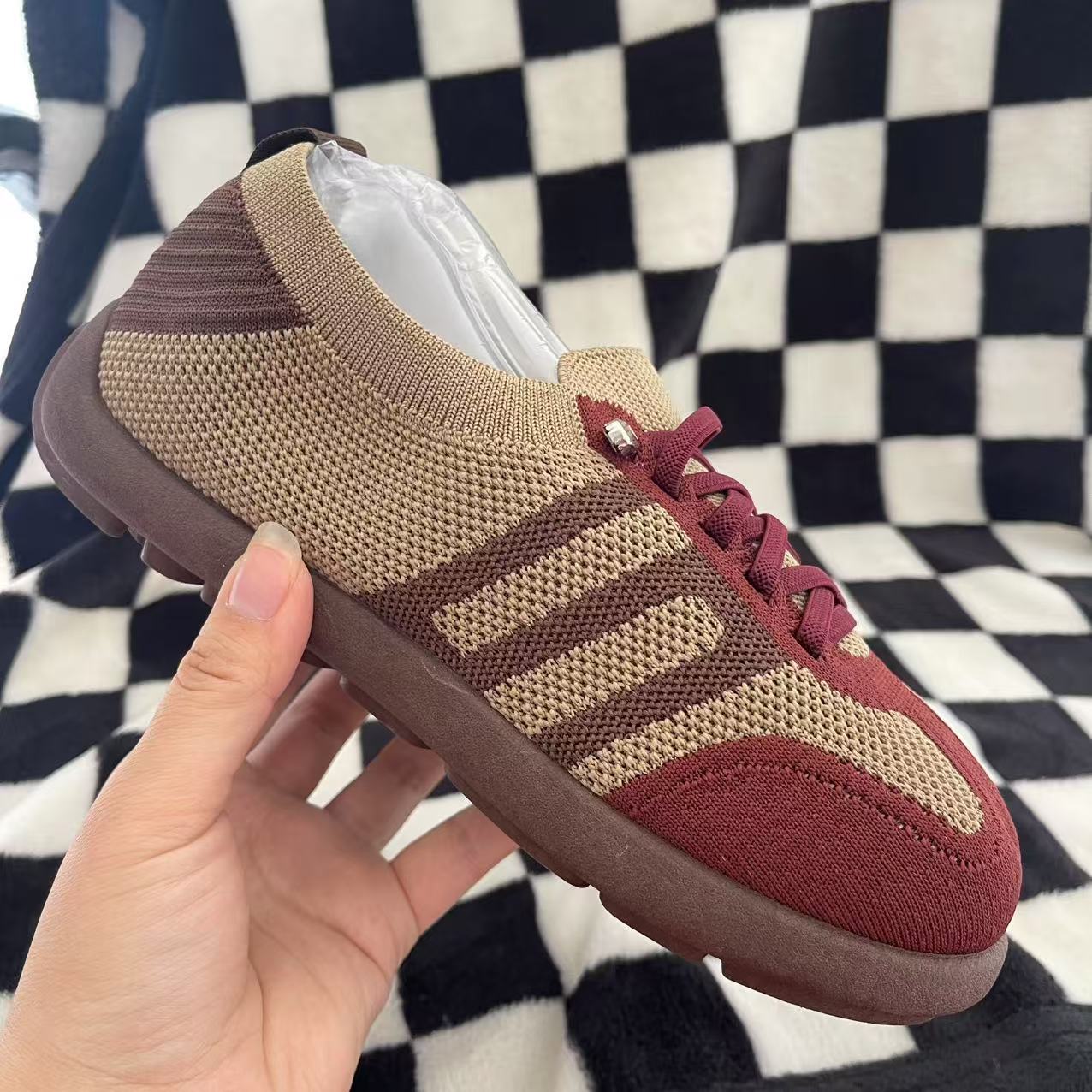 【关于售后】刚出厂的鞋子会有些胶水气味、放置通气处胶水气味就会散去。小线头、小污点、均非质量问题不予退换,请慎重订货、避免引起不必要的纠纷。