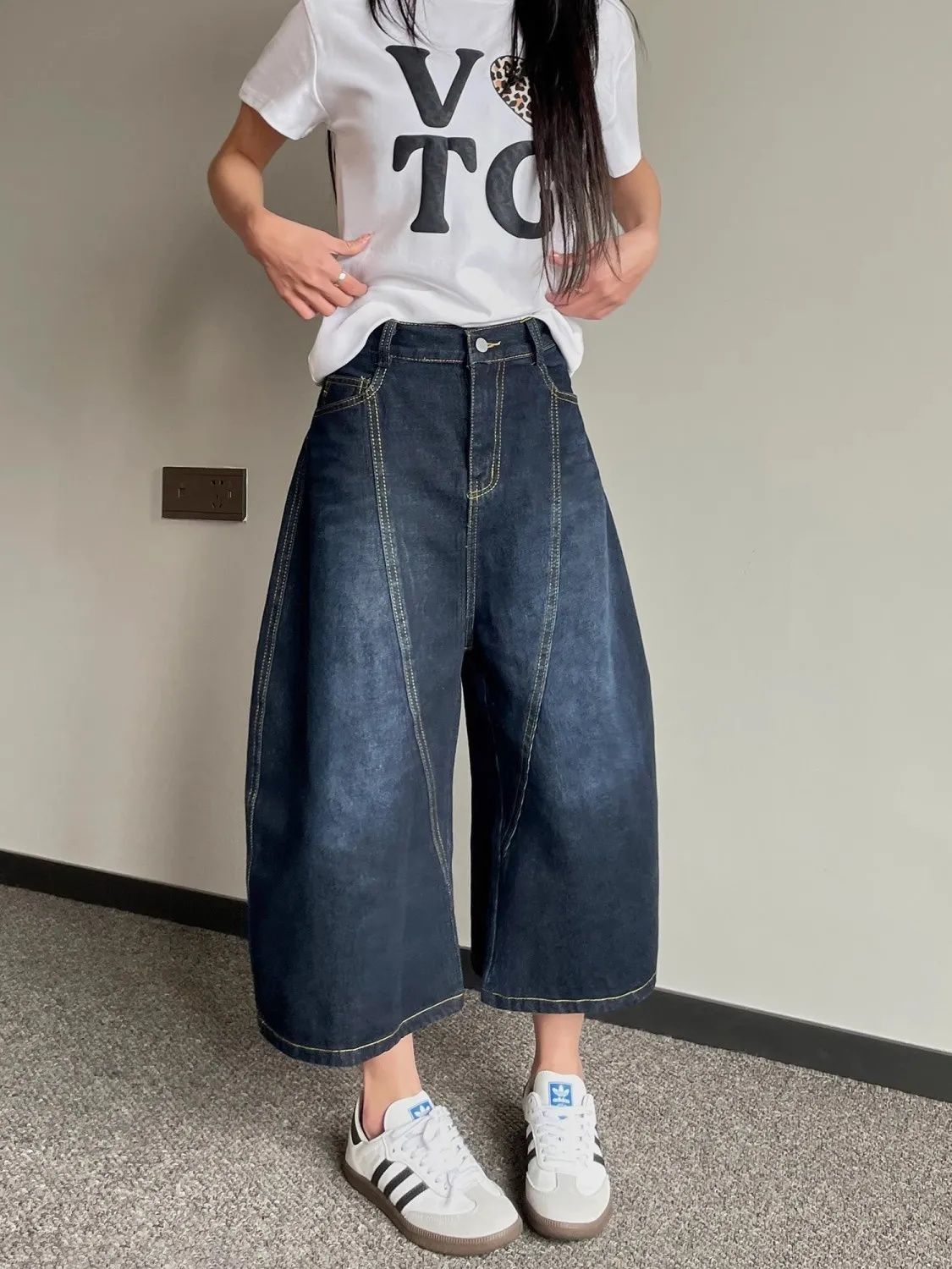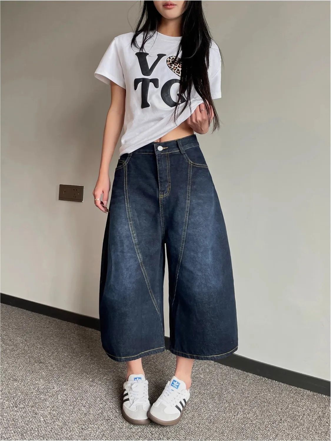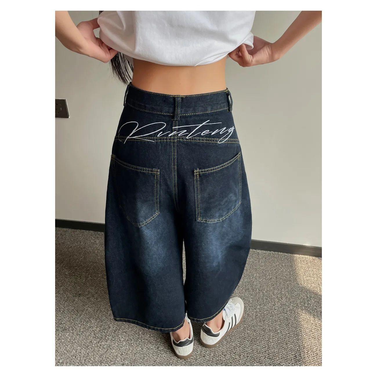 아메리칸 스타일 빈티지 자수 마체테 바지 카프리 청바지 남성과 여성 여름 느슨한 넓은 다리 바지 얇은 짧은 바지스토어 가기