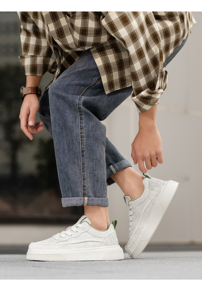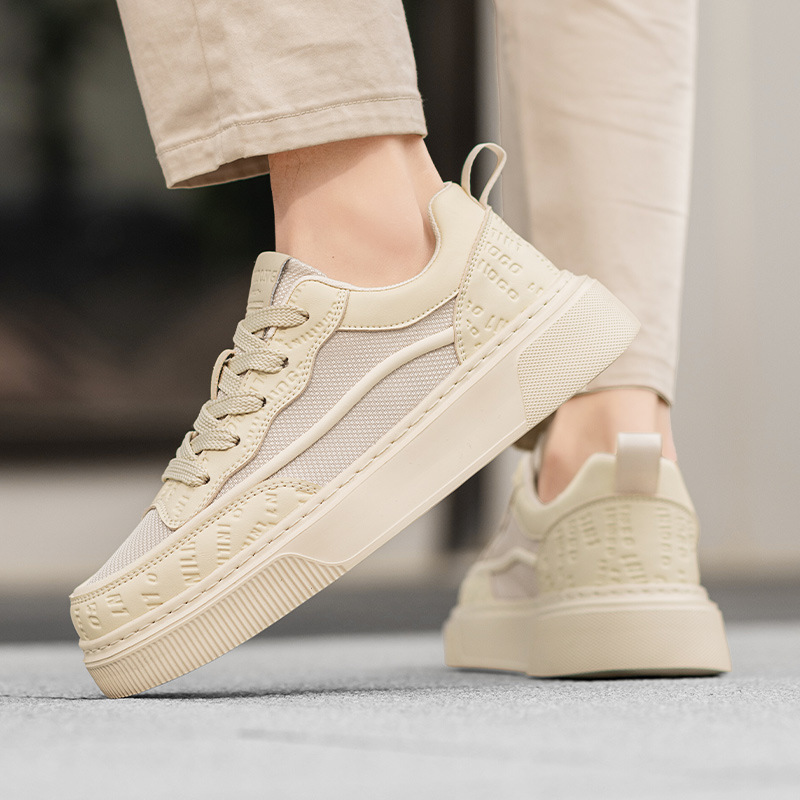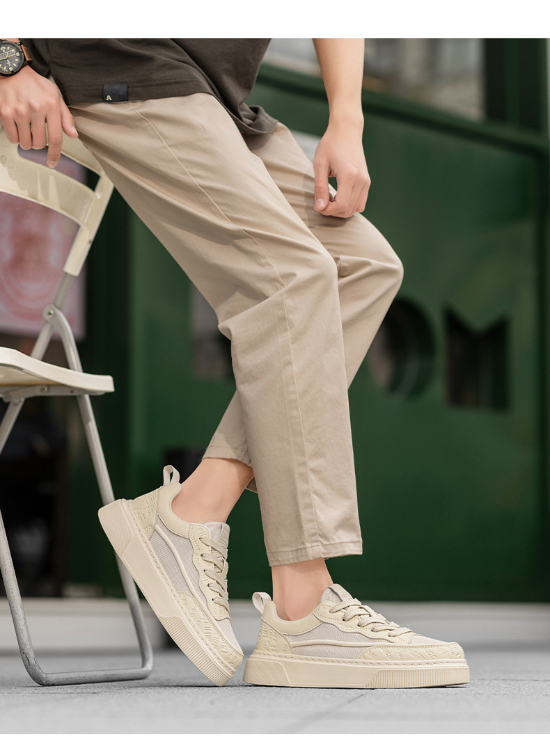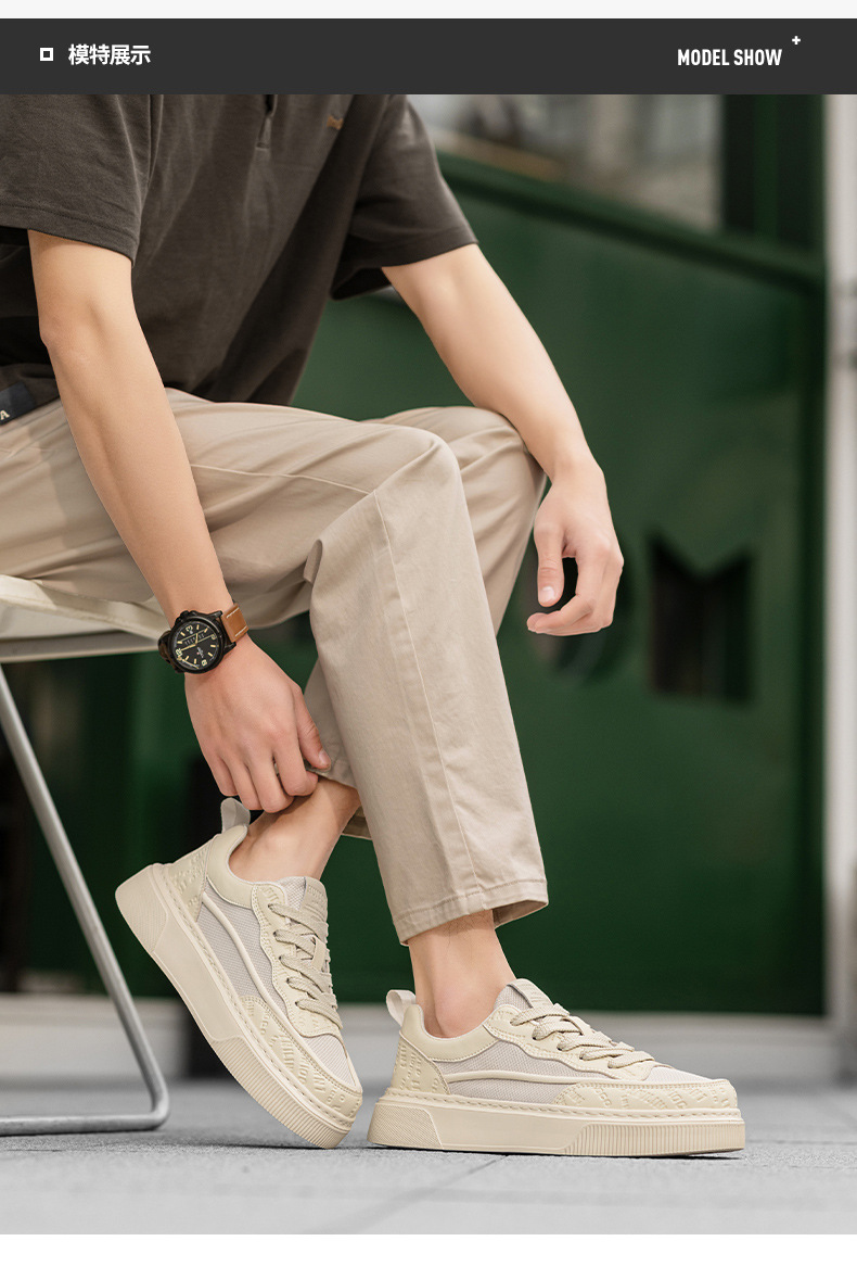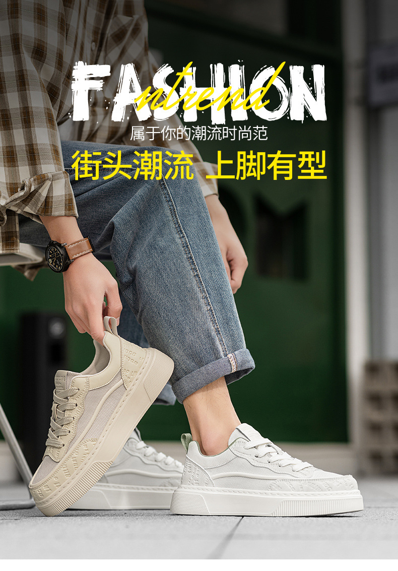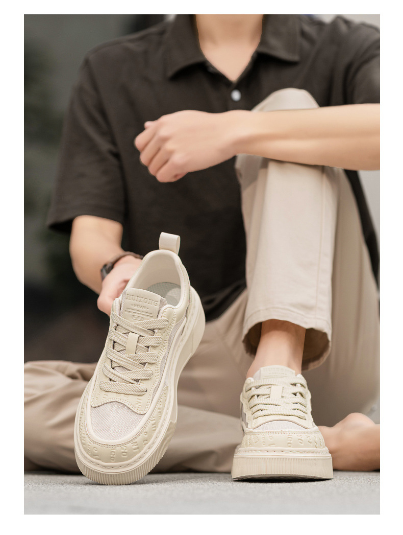남성 신발 2025 봄과 여름 새로운 패션 화이트 신발 남성 경량 두꺼운 밑창 스포츠 캐주얼 신발 메쉬 통기성 보드 신발스토어 가기