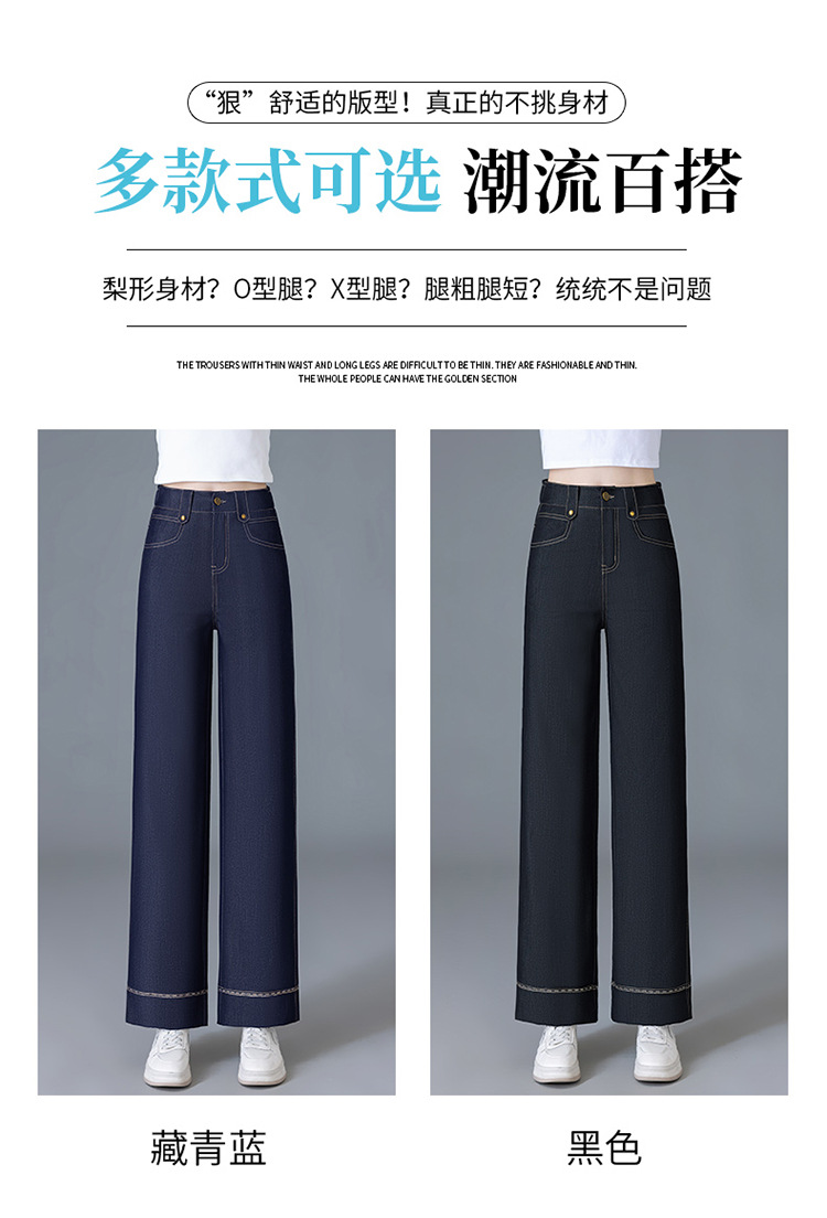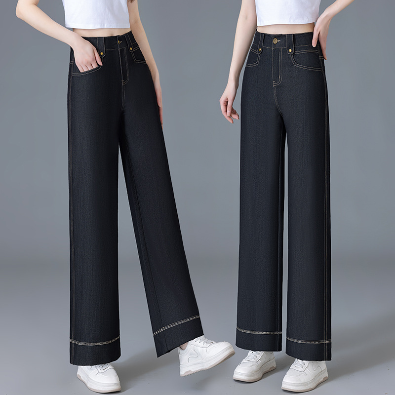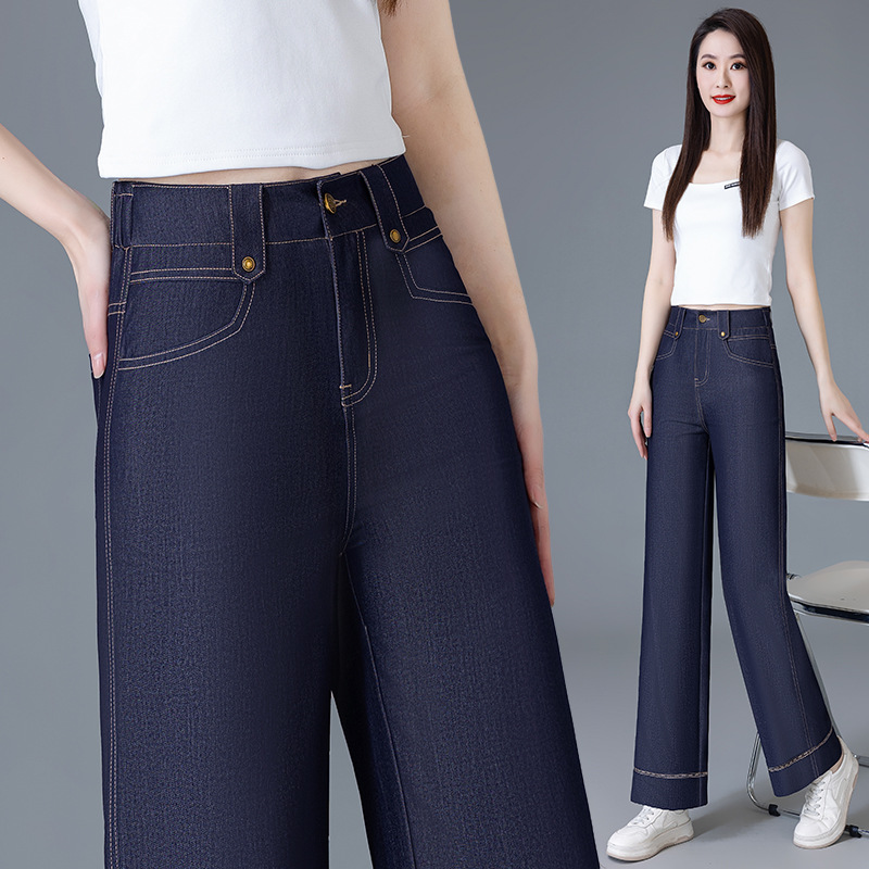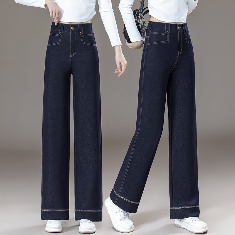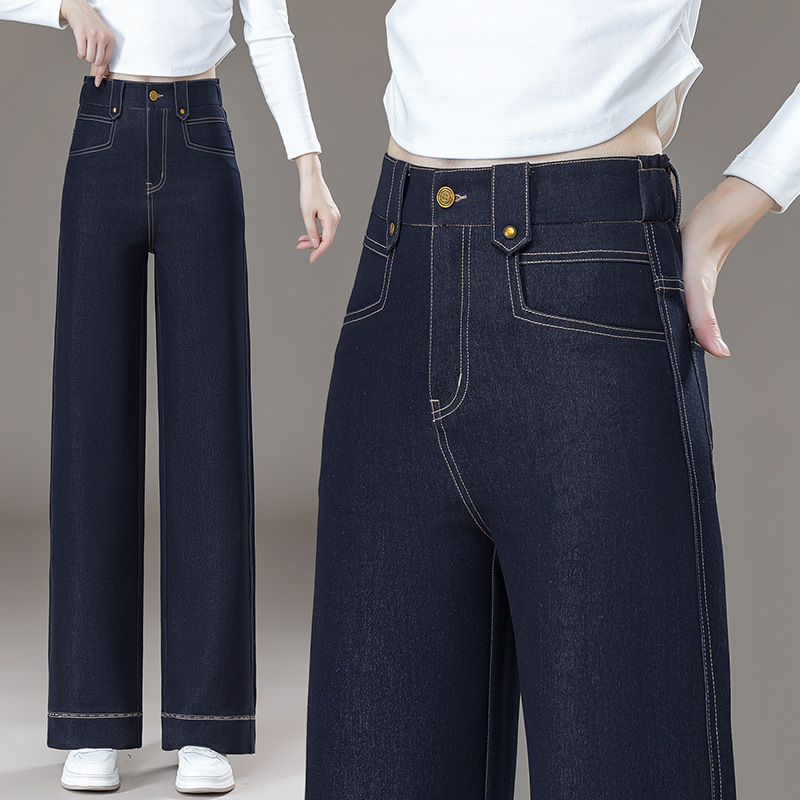 변색되지 않는 데님 블루 와이드 레그 청바지 여성용 봄 가을 2026 신상 인기 루즈핏 캐주얼 진청색 스트레이트 팬츠스토어 가기
