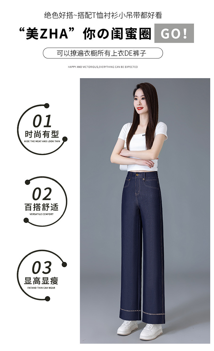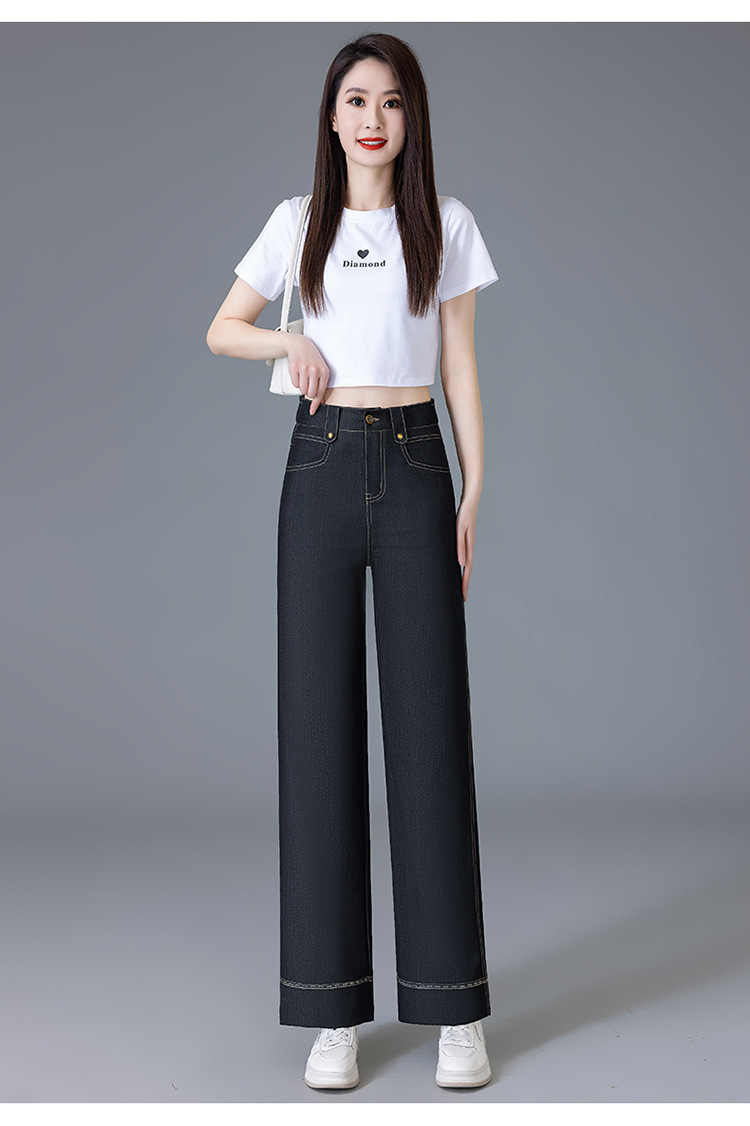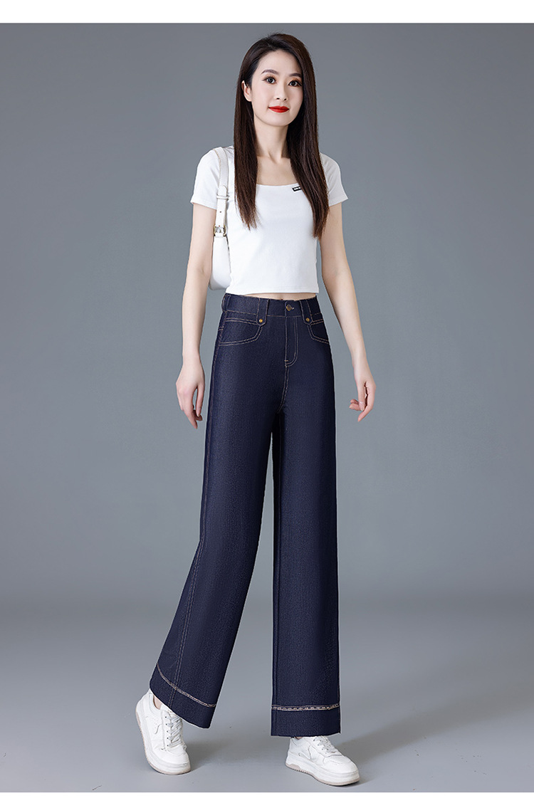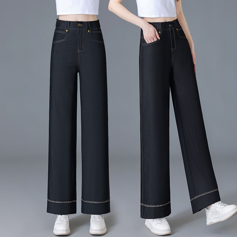 변색되지 않는 데님 블루 와이드 레그 청바지 여성용 봄 가을 2026 신상 인기 루즈핏 캐주얼 진청색 스트레이트 팬츠스토어 가기