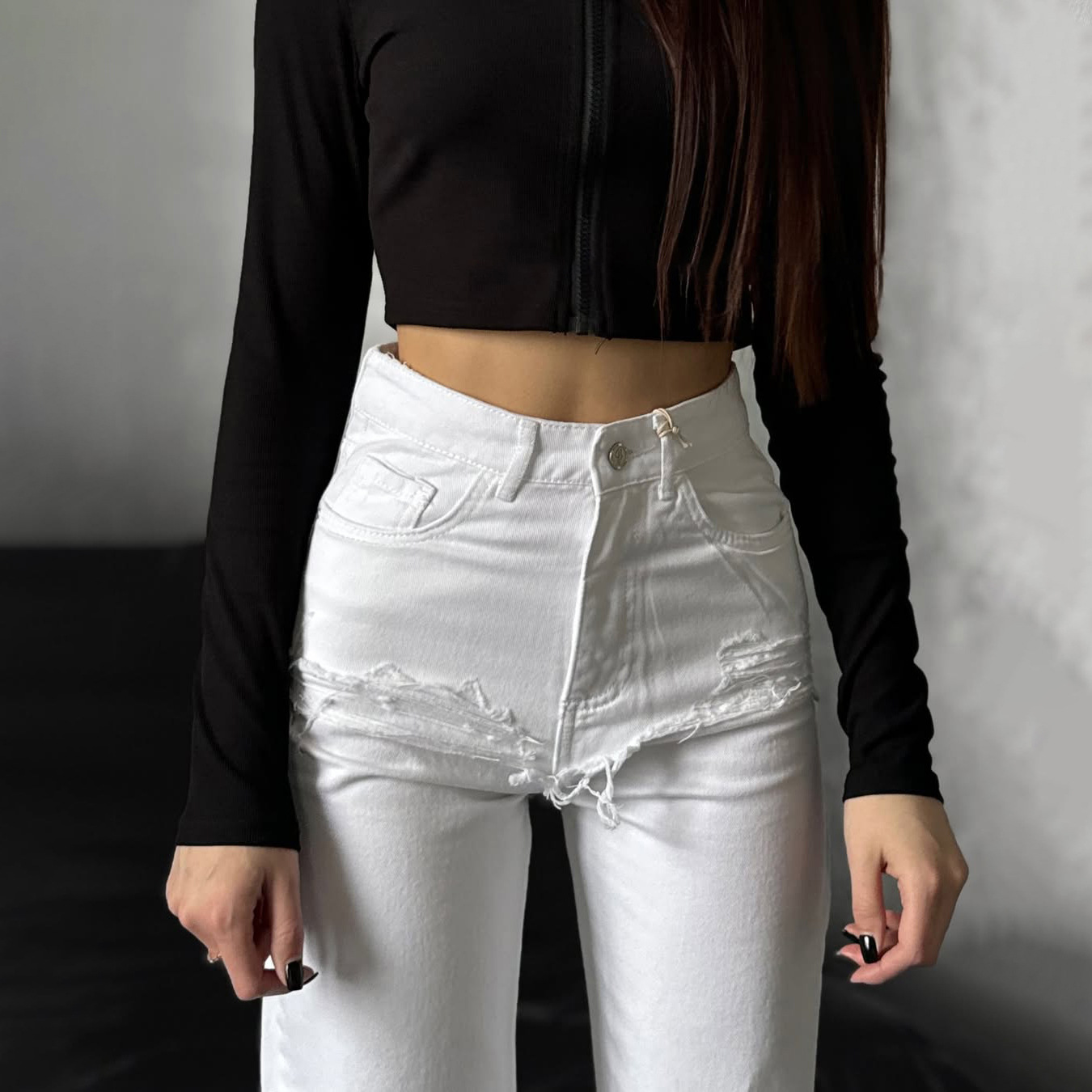 欧美小众hiphop高街潮牌时尚做旧洗水割破高腰直筒型牛仔裤百搭女