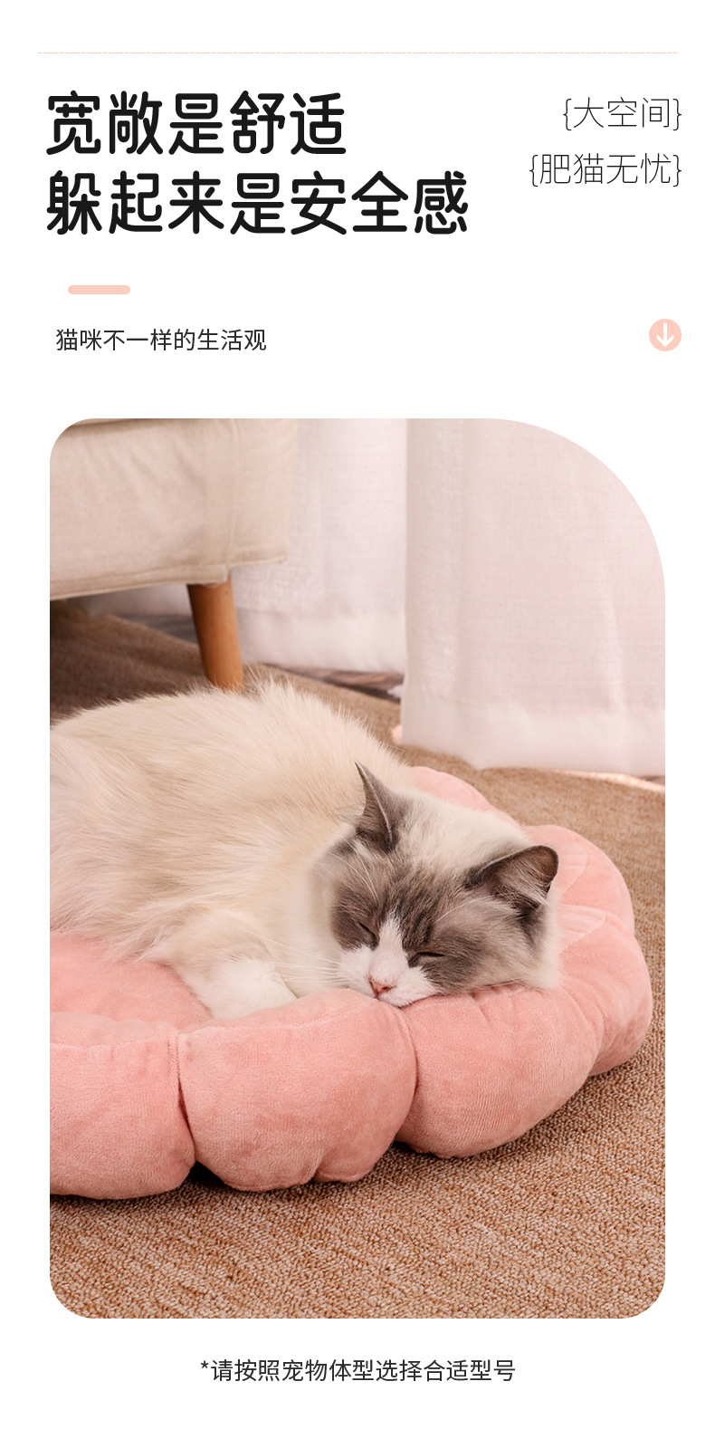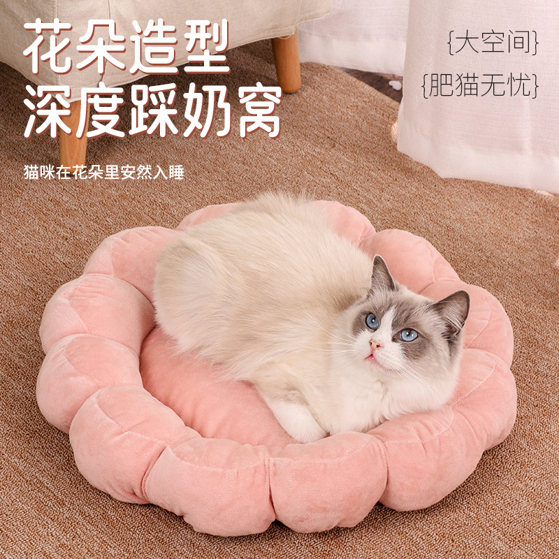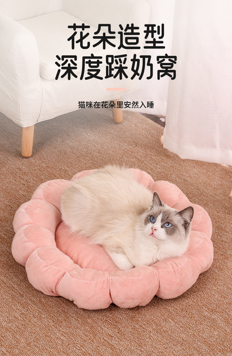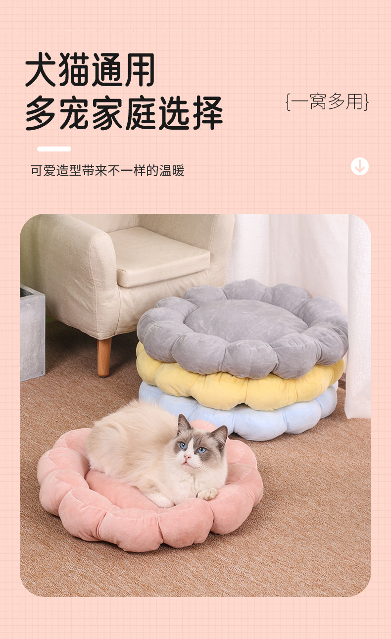 다색 꽃잎 고양이 둥지 반 밀폐형 디자인 양면 짧은 플러시 애완 동물 둥지 사계절 공통 제조 업체 도매 애완 동물 침대스토어 가기