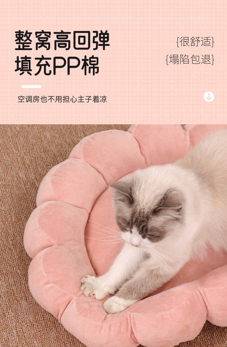 다색 꽃잎 고양이 둥지 반 밀폐형 디자인 양면 짧은 플러시 애완 동물 둥지 사계절 공통 제조 업체 도매 애완 동물 침대