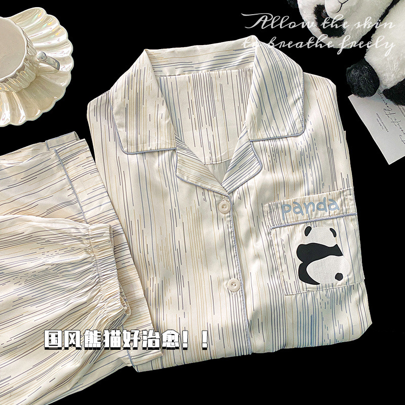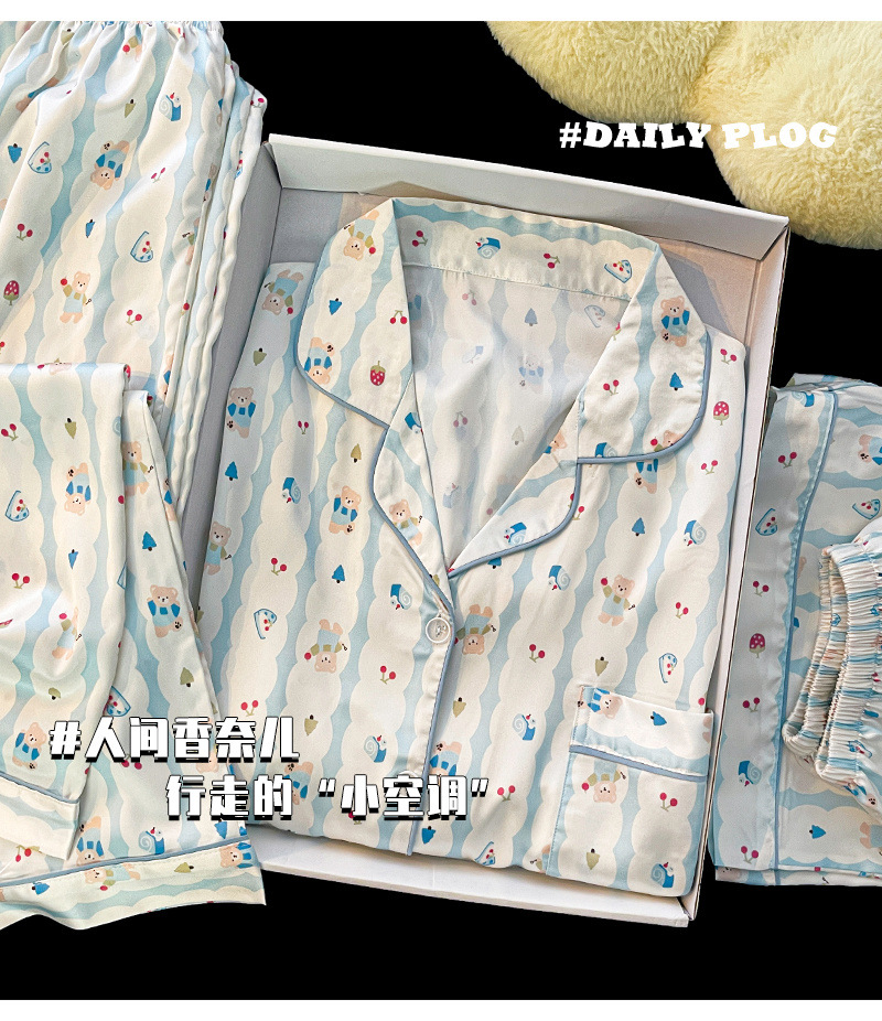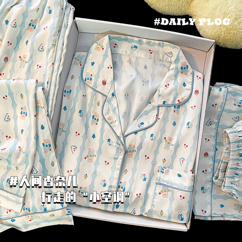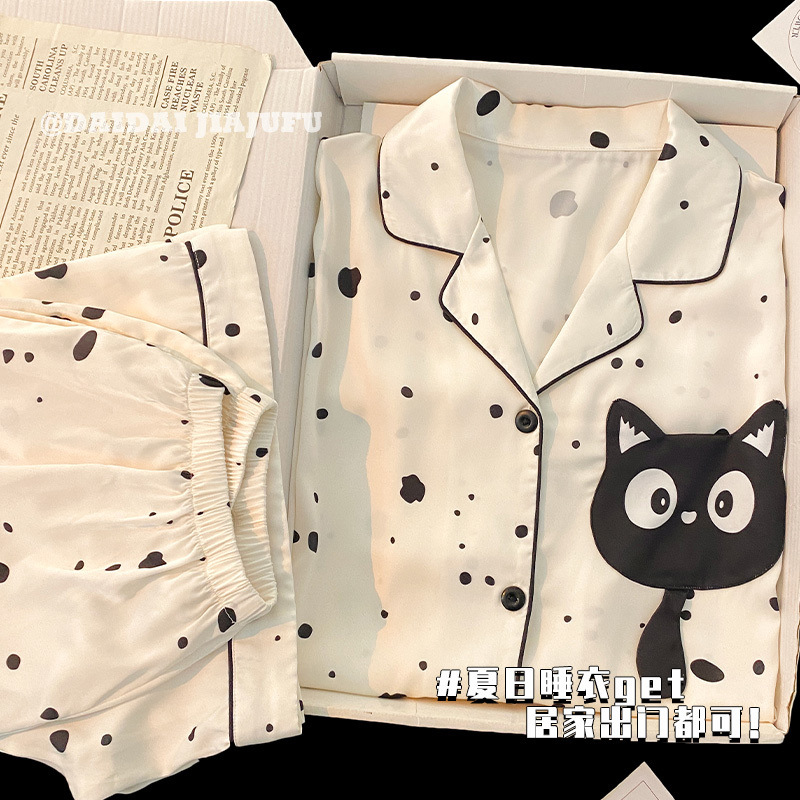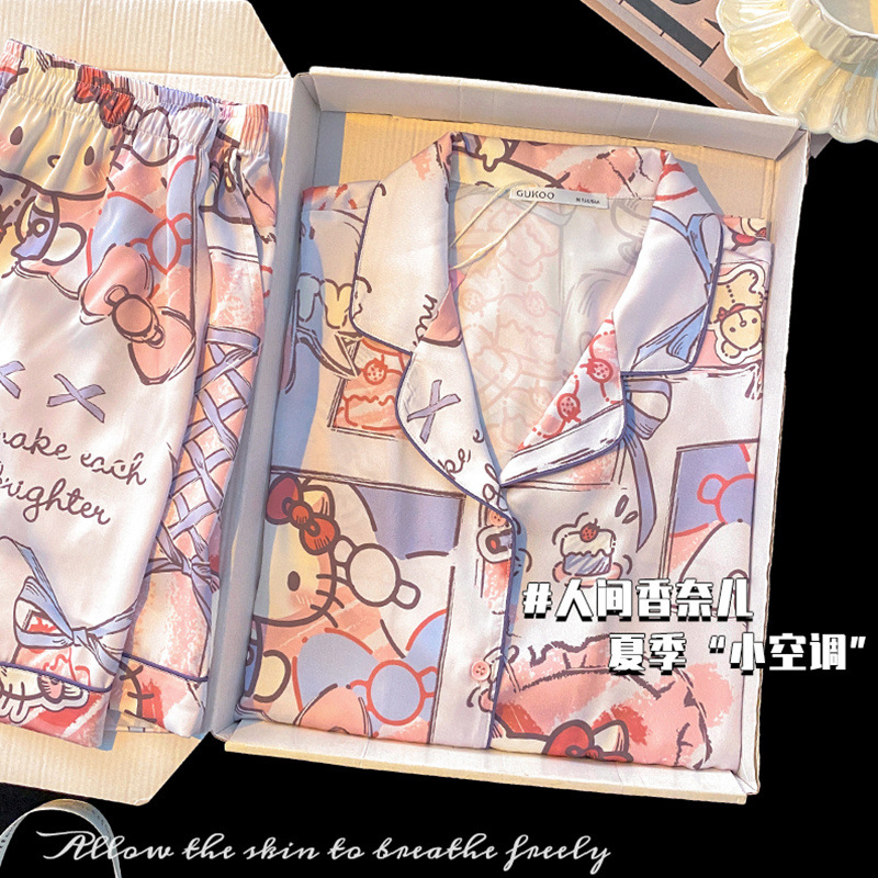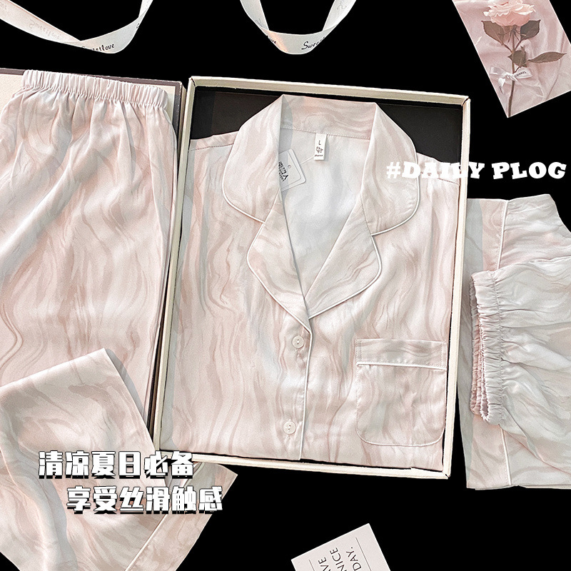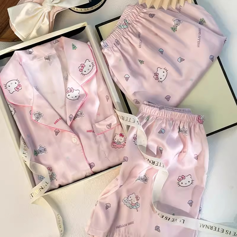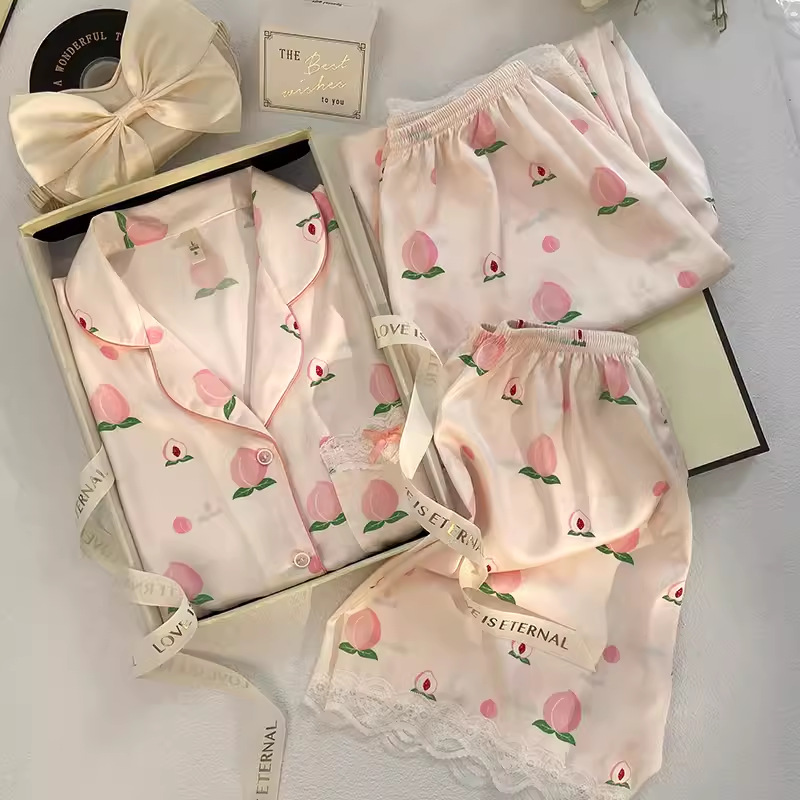 나비 3 조각 여름 잠옷 여성용 아이스 실크 고급 반팔 바지 여름 얇은 홈 의류 세트스토어 가기