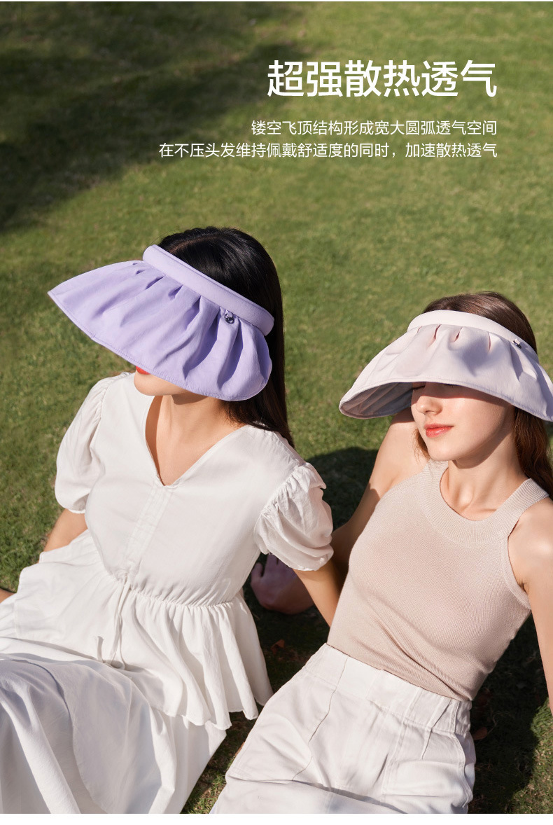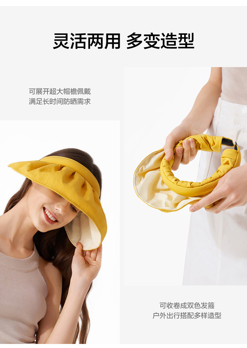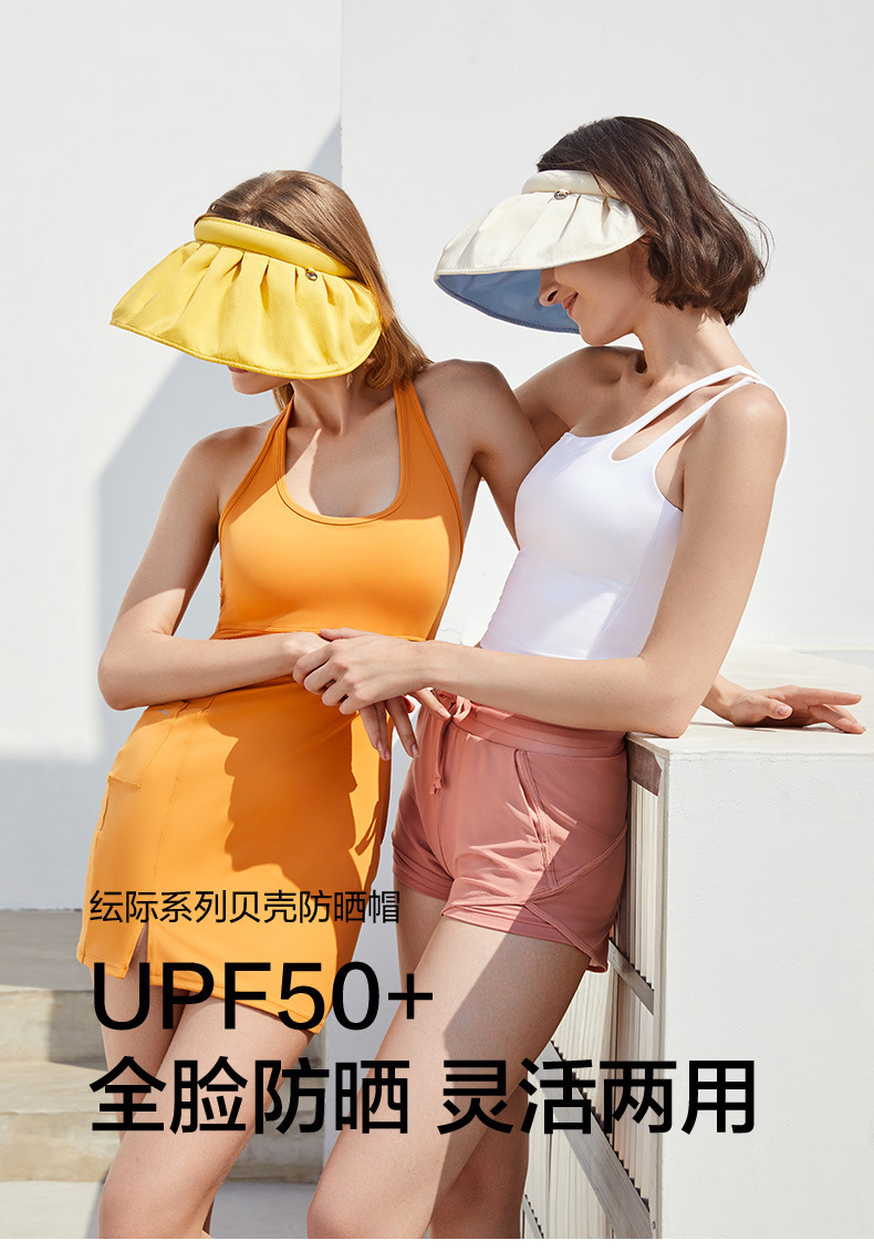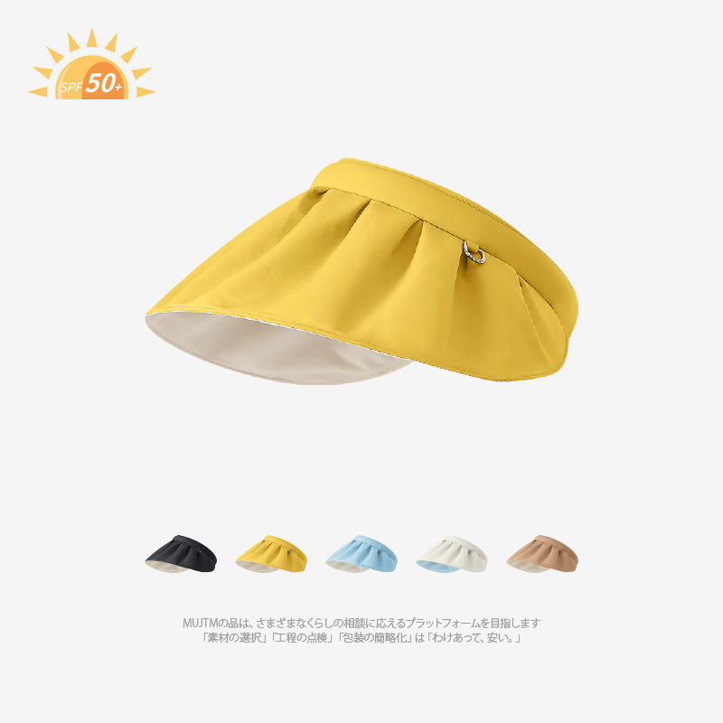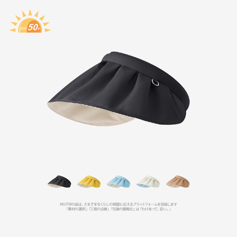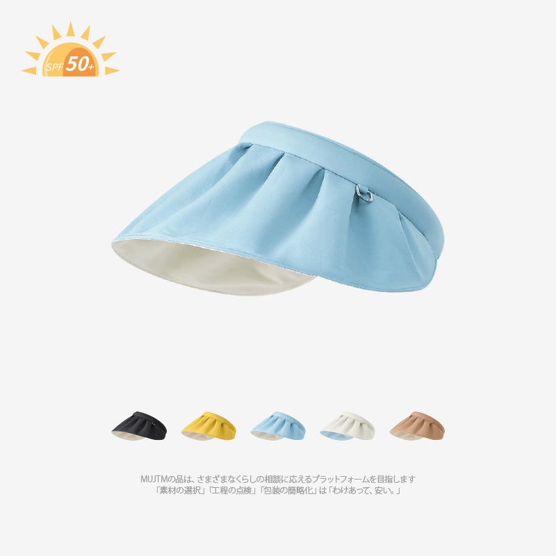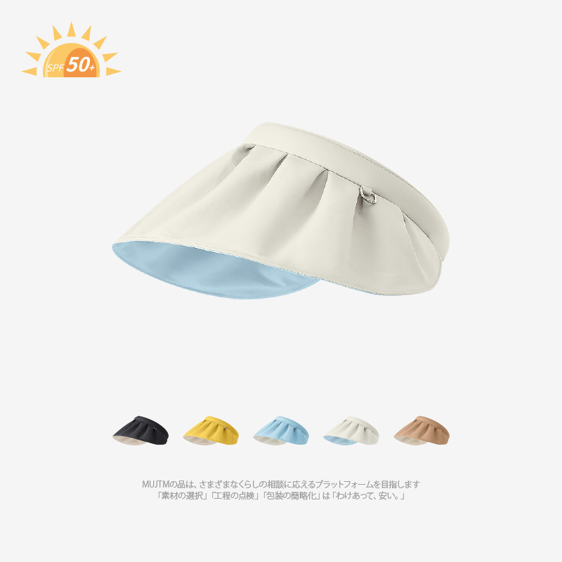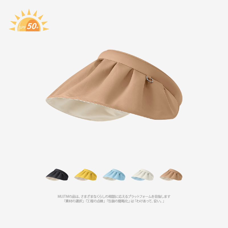 UPF50 여성용 쉘 선 스크린 모자 빅 브림 접이식 여름 빈 차양 모자 안티 UV