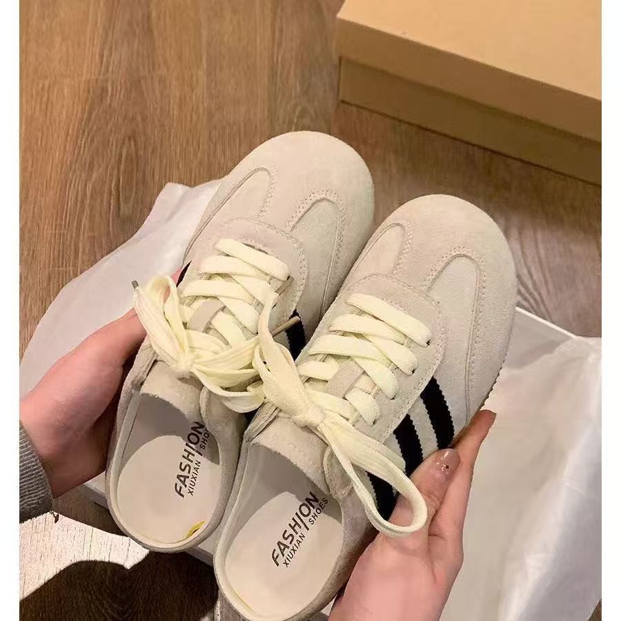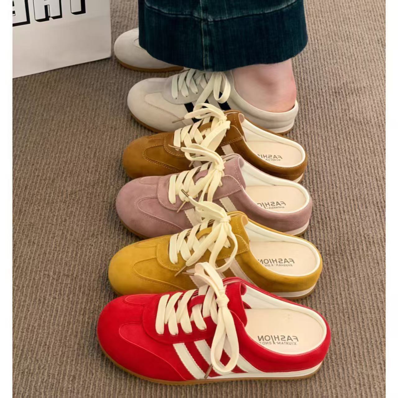 여성용 두꺼운 밑창 반슬리퍼 핑크 발가락 슬리퍼 2025 인터넷 연예인 핫 스타일 패션 캐주얼 레이스 업 육군 훈련 신발