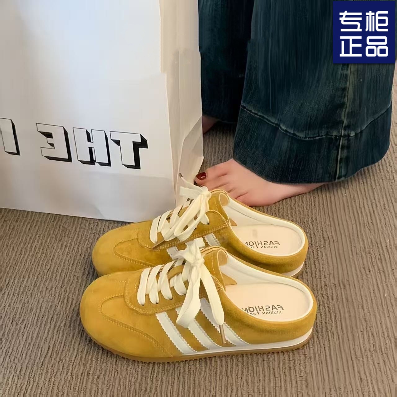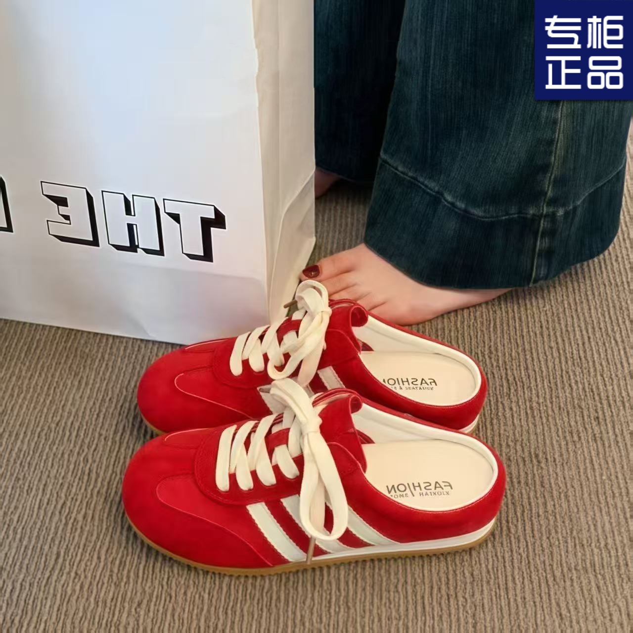 여성용 두꺼운 밑창 반슬리퍼 핑크 발가락 슬리퍼 2025 인터넷 연예인 핫 스타일 패션 캐주얼 레이스 업 육군 훈련 신발스토어 가기