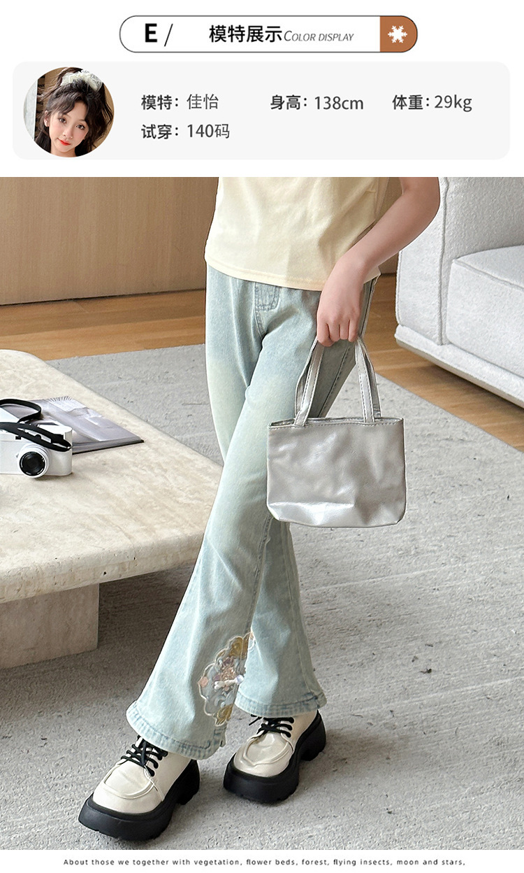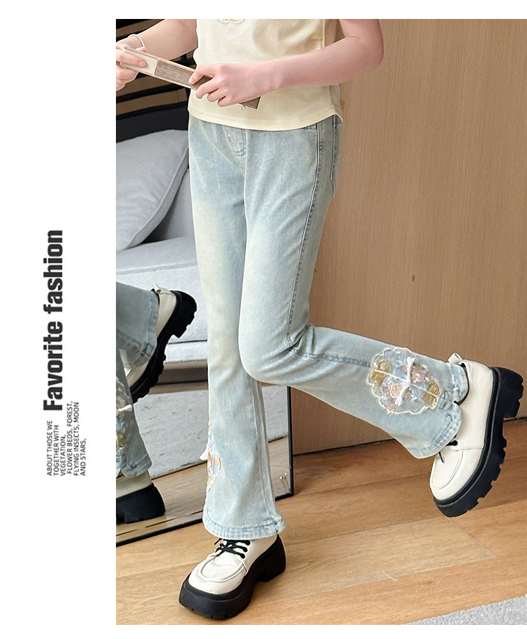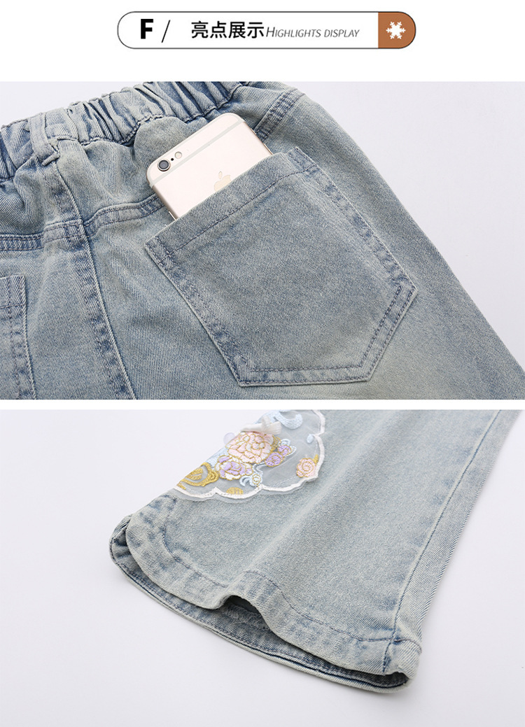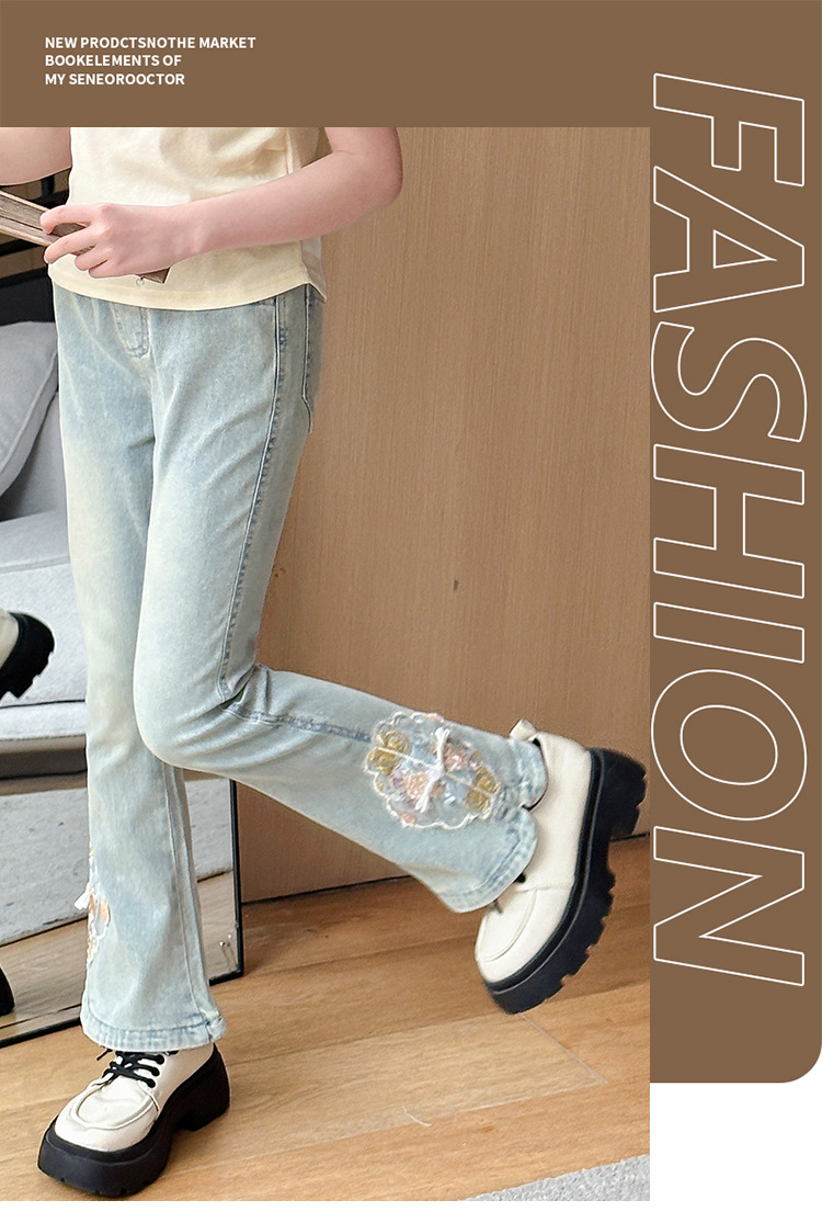 여아 봄, 가을 중국 스타일 청바지 중국 스타일 의류 2025 새로운 스타일 중대형 어린이 소녀 유행 와이드 팬츠스토어 가기
