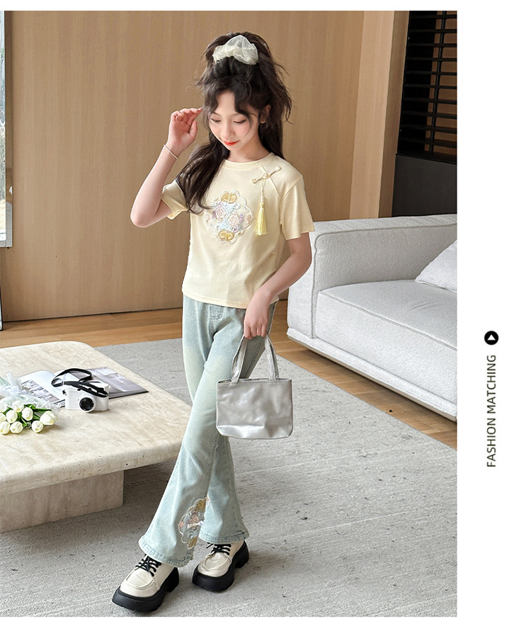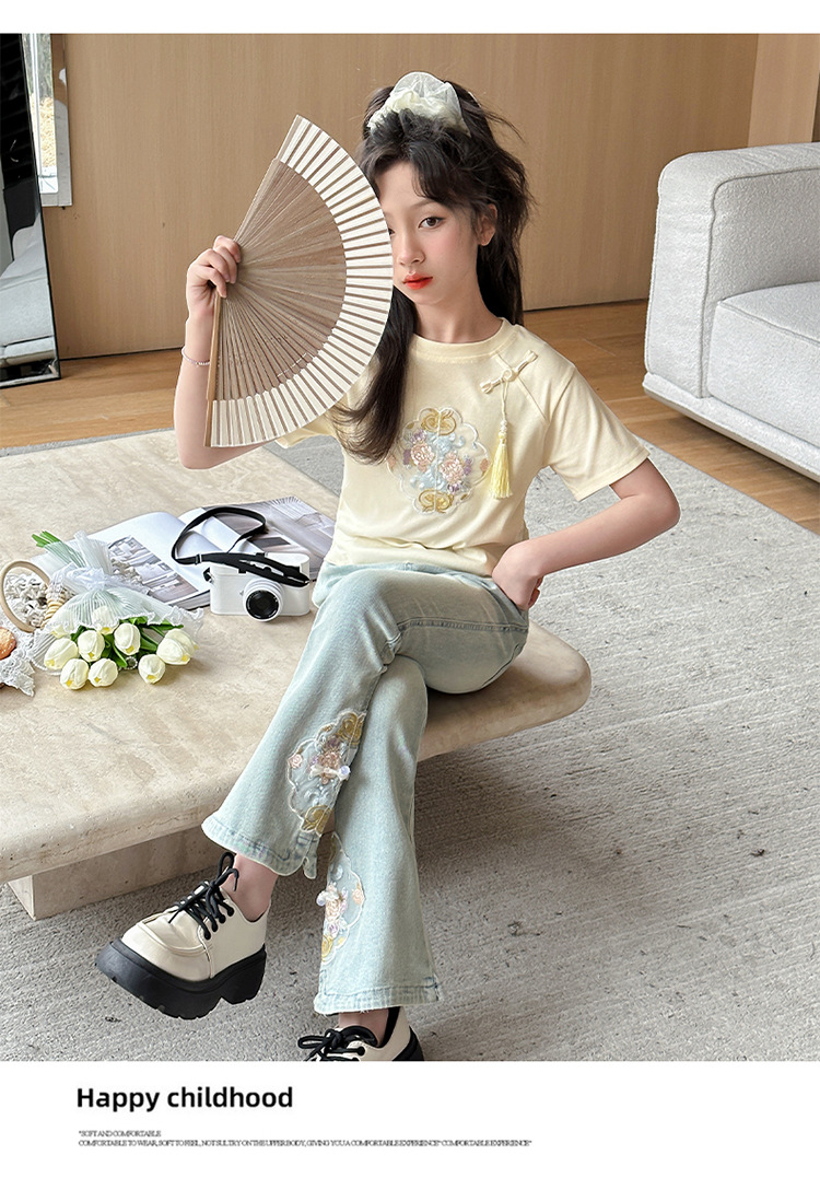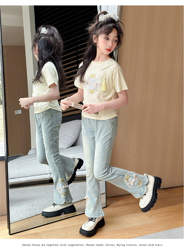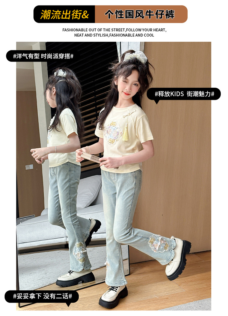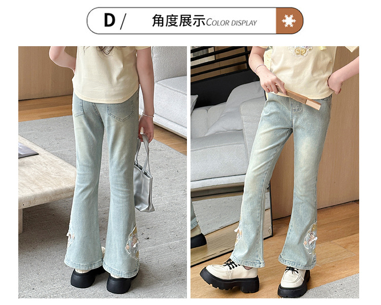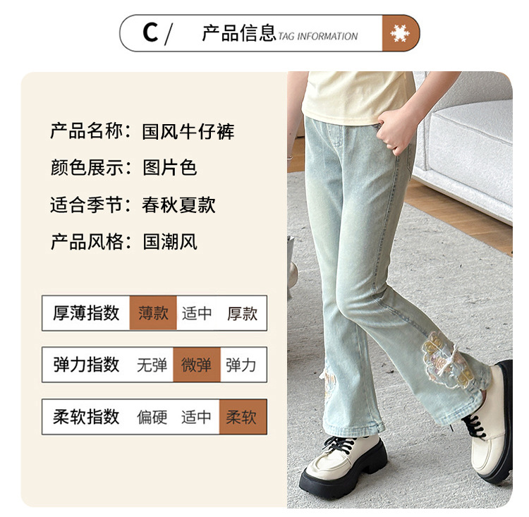 여아 봄, 가을 중국 스타일 청바지 중국 스타일 의류 2025 새로운 스타일 중대형 어린이 소녀 유행 와이드 팬츠